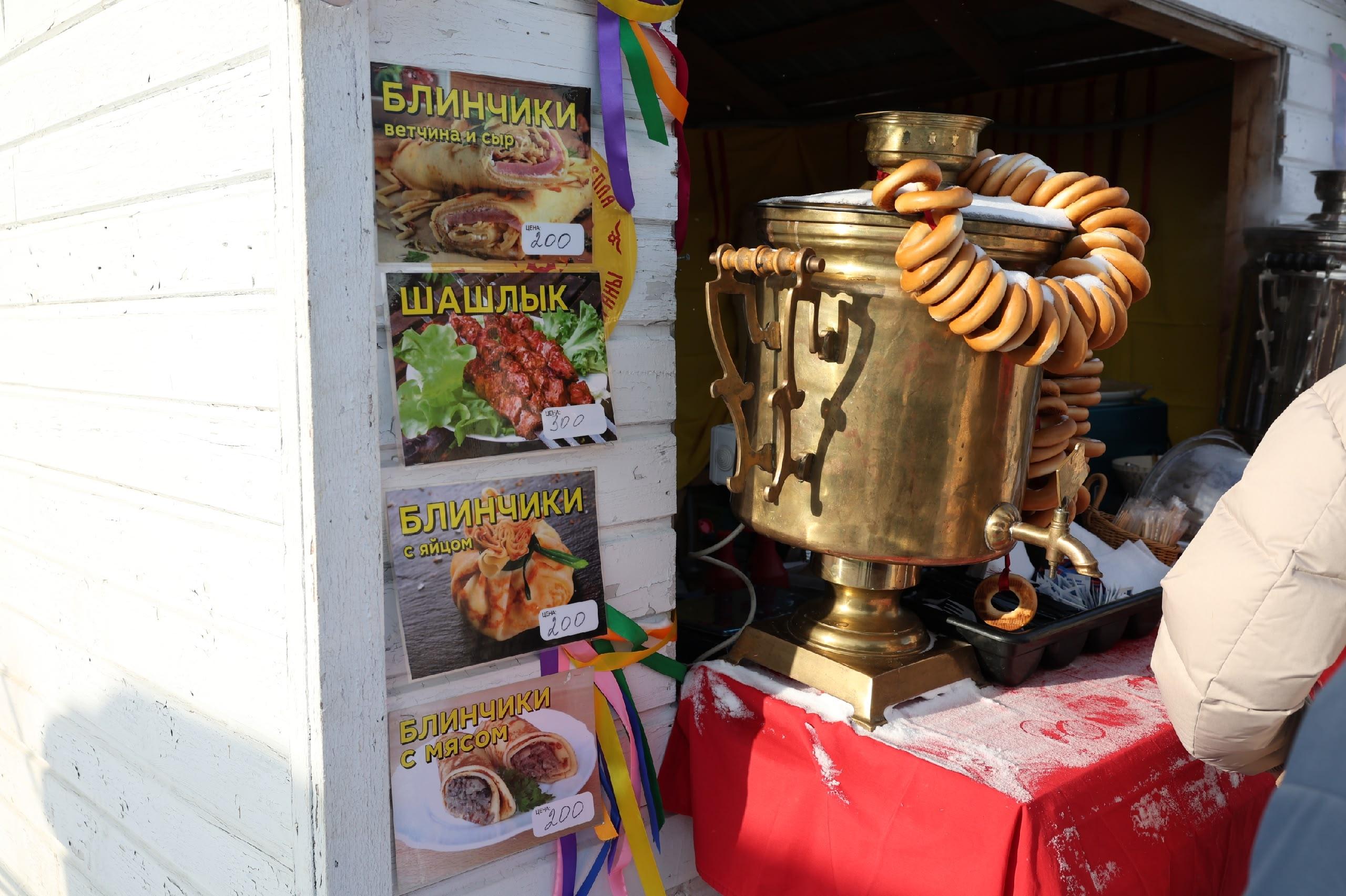 В рамках праздника работала ярмарка с широким ассортиментом. Посетителям предлагали сувениры, шашлык, чай, глинтвейн и традиционные блины. Ниже представлен обзор товаров и их стоимости.