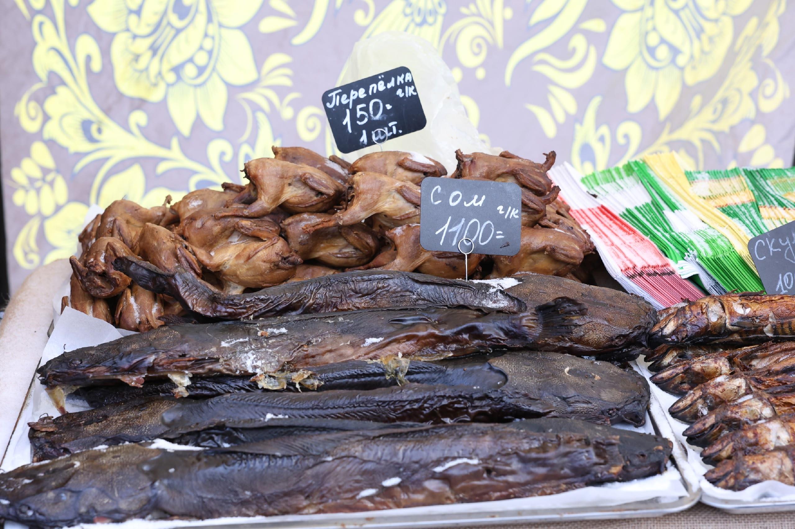 Среди товаров есть копченая рыба: щука, судак и лещ