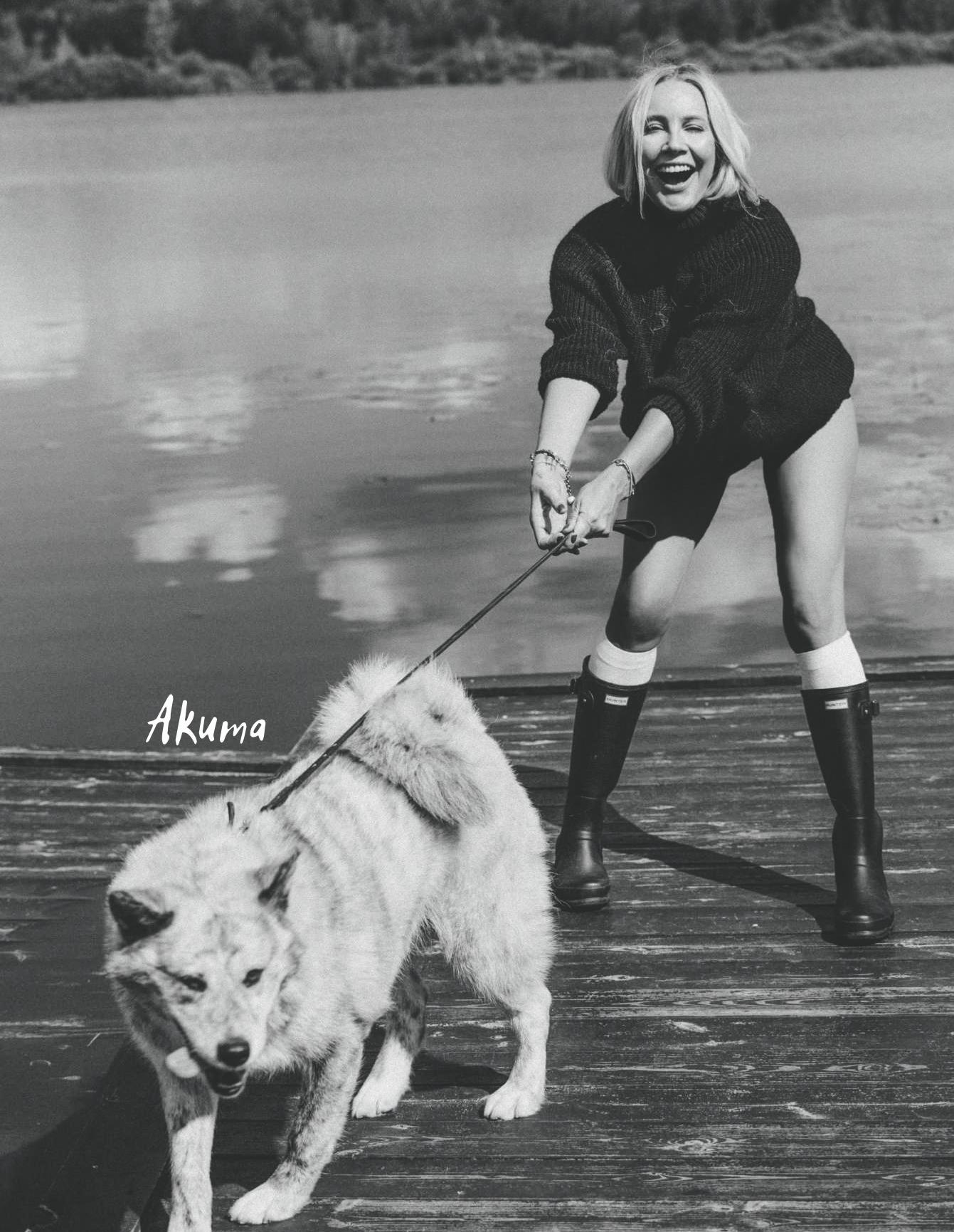 Елена описала характер Акиты: «Акита увлеченная натура, она свободолюбива и не подпускает к себе человека, если он ей несимпатичен. А еще — при всей красоте и стати она так же неуклюжа, как я. Сложно представить насколько!»