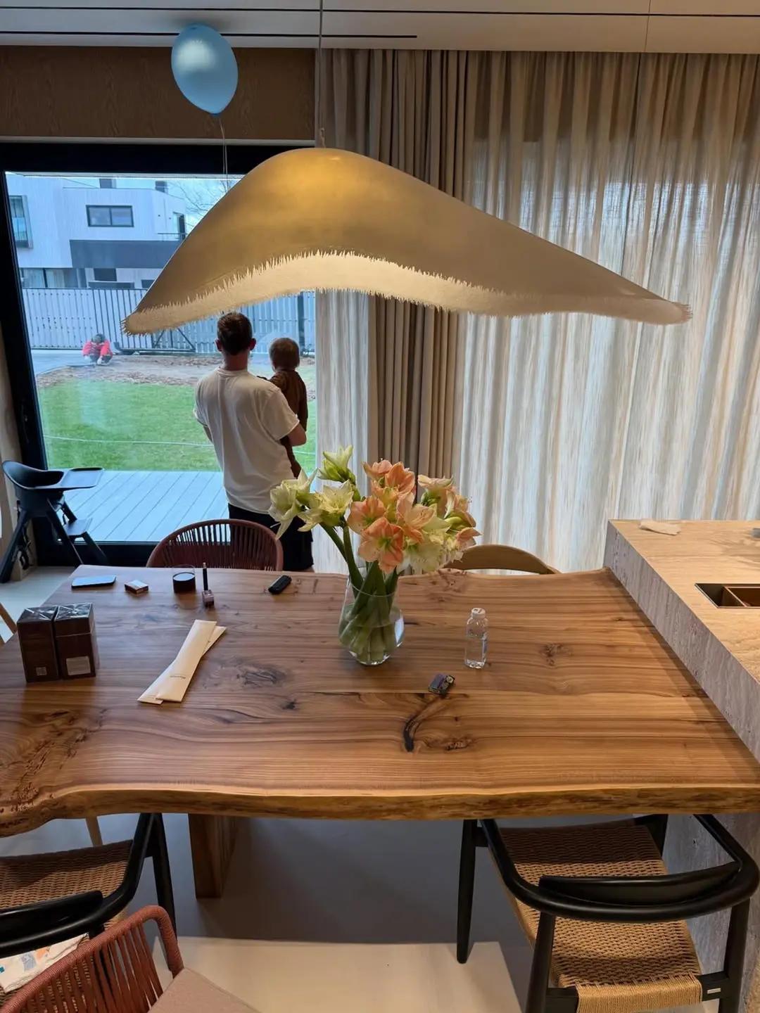 Празднование первого дня рождения прошло в новом загородном доме семьи. В гостиной супруги организовали фотозону с воздушными шарами, а кухня была украшена многочисленными букетами цветов.