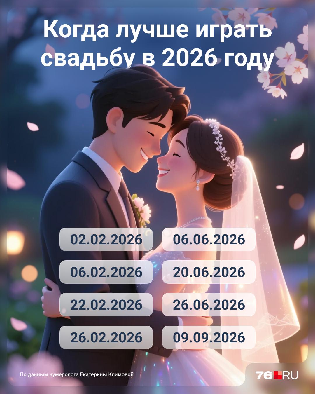 Список благоприятных дат для свадьбы в 2026 году