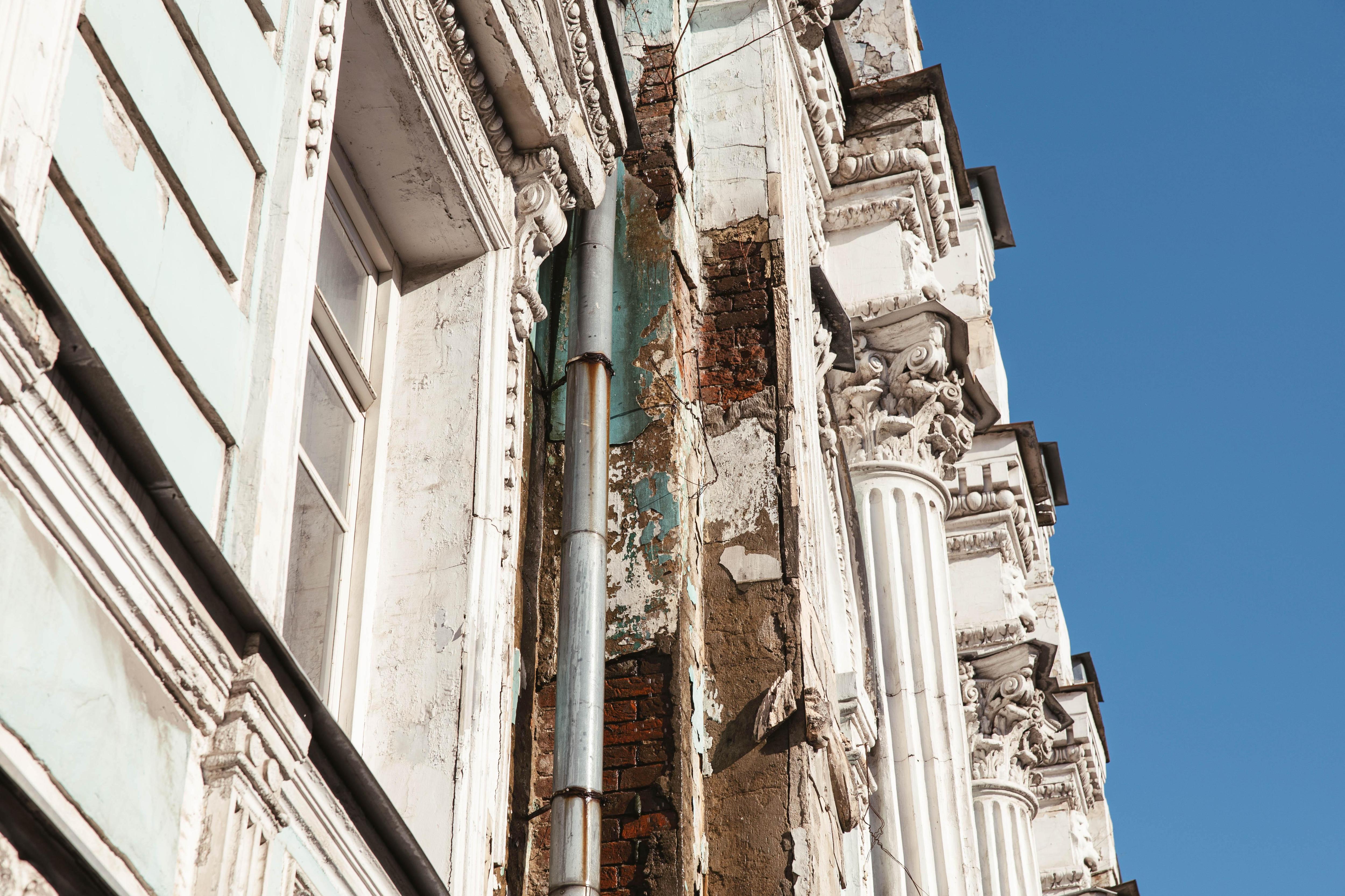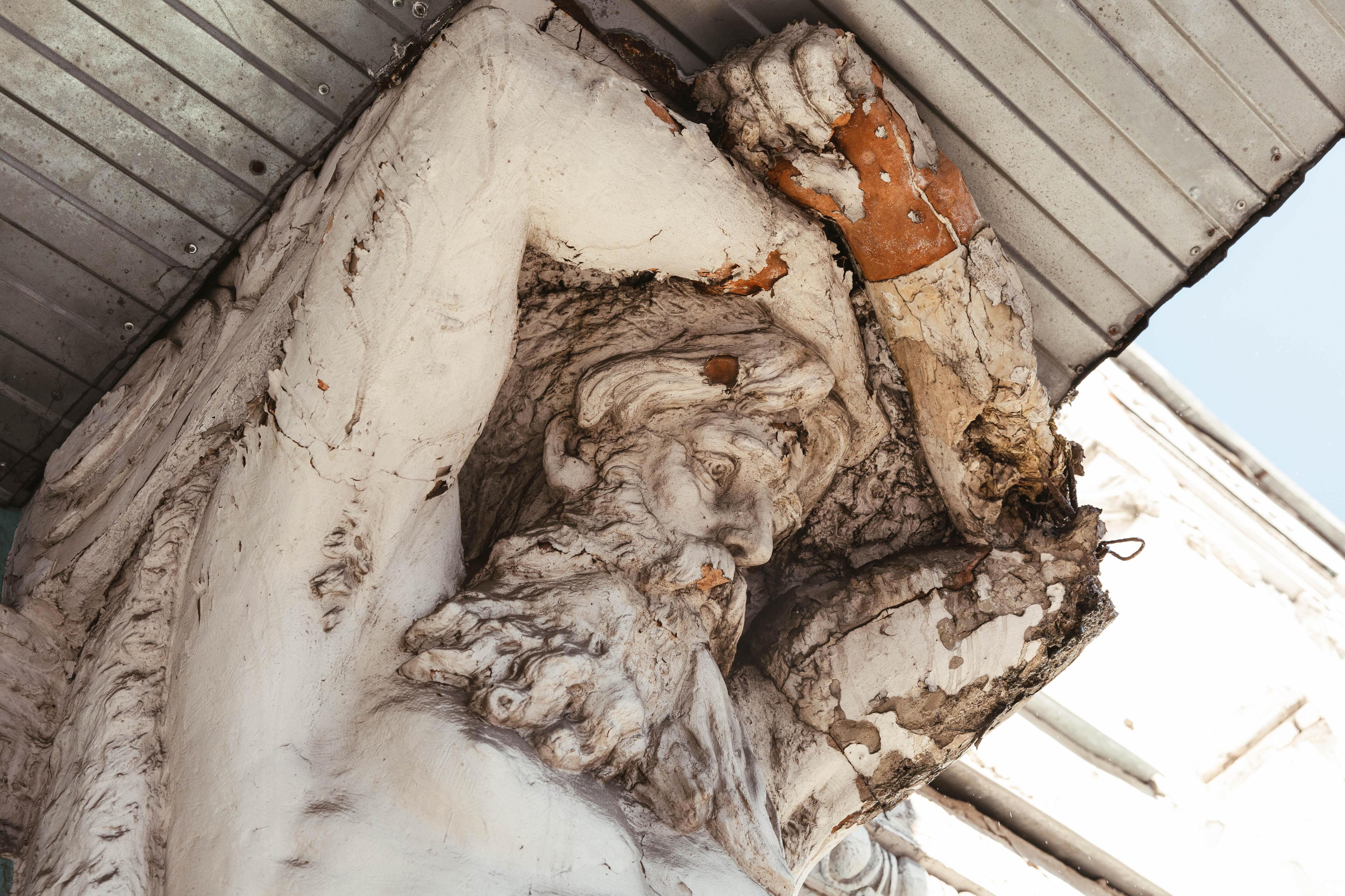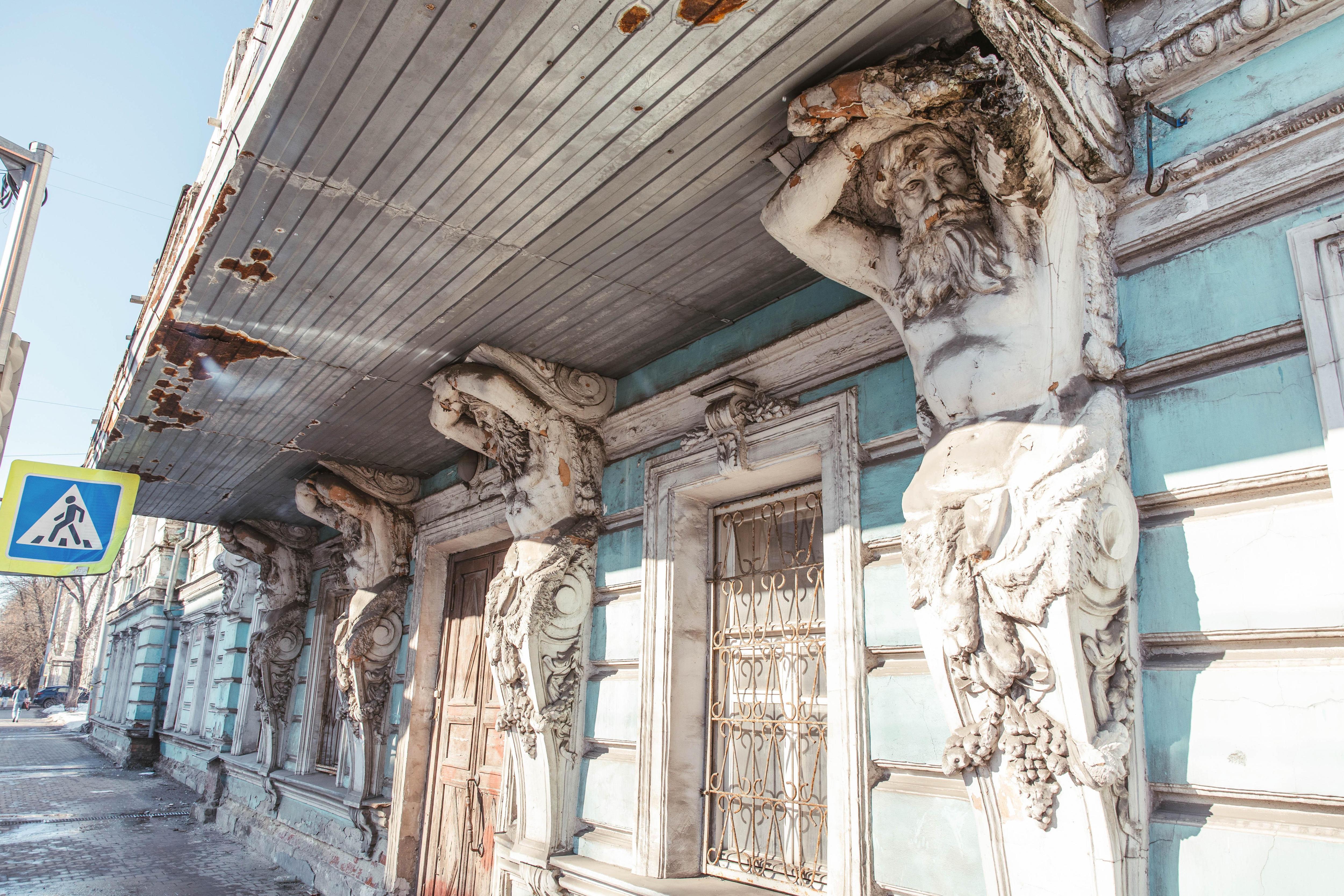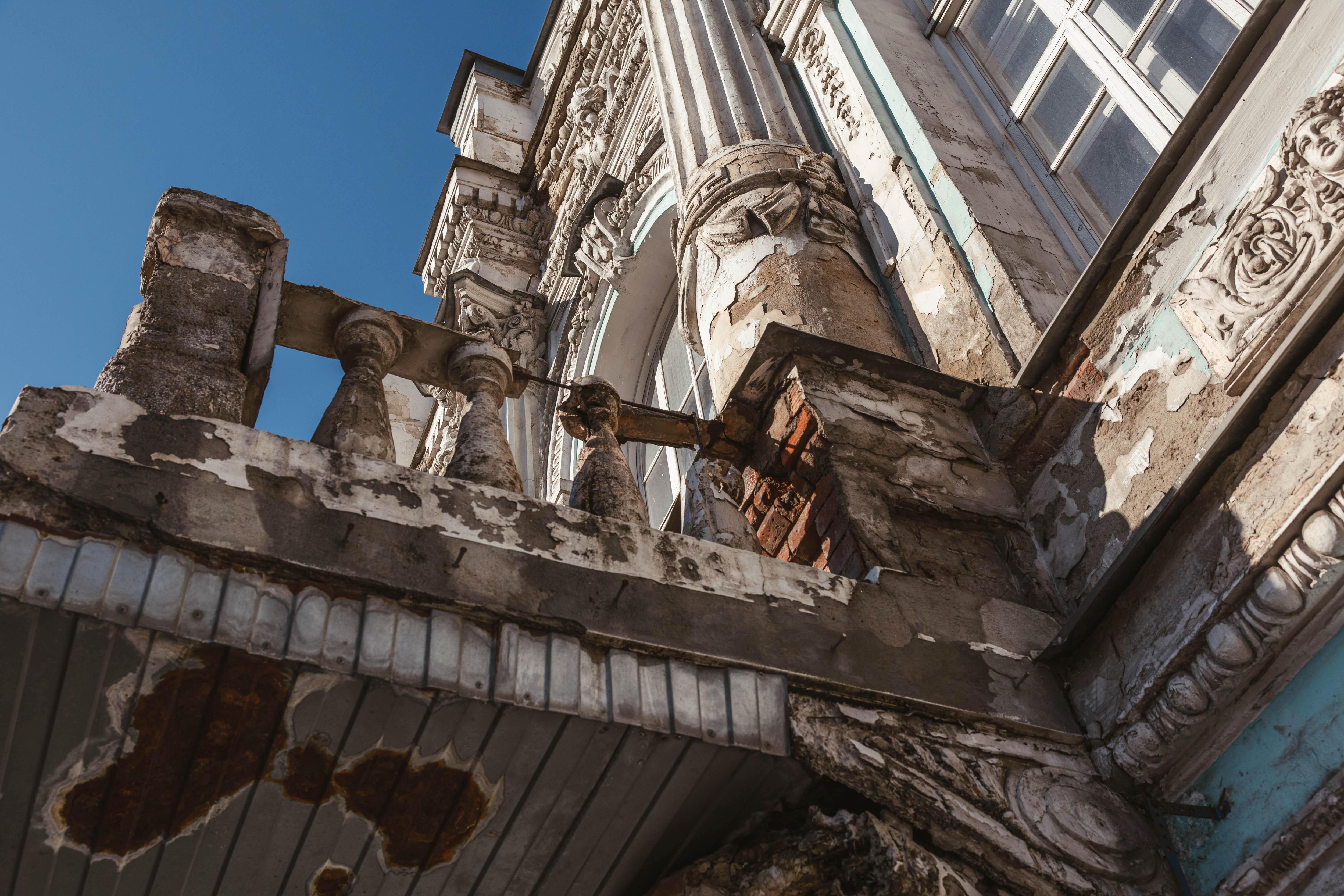 Фасад особняка покрыт трещинами, декоративная лепнина осыпается, а четыре скульптуры атлантов, являющиеся его главным украшением, постепенно теряют форму. Фотографии демонстрируют масштаб разрушений.