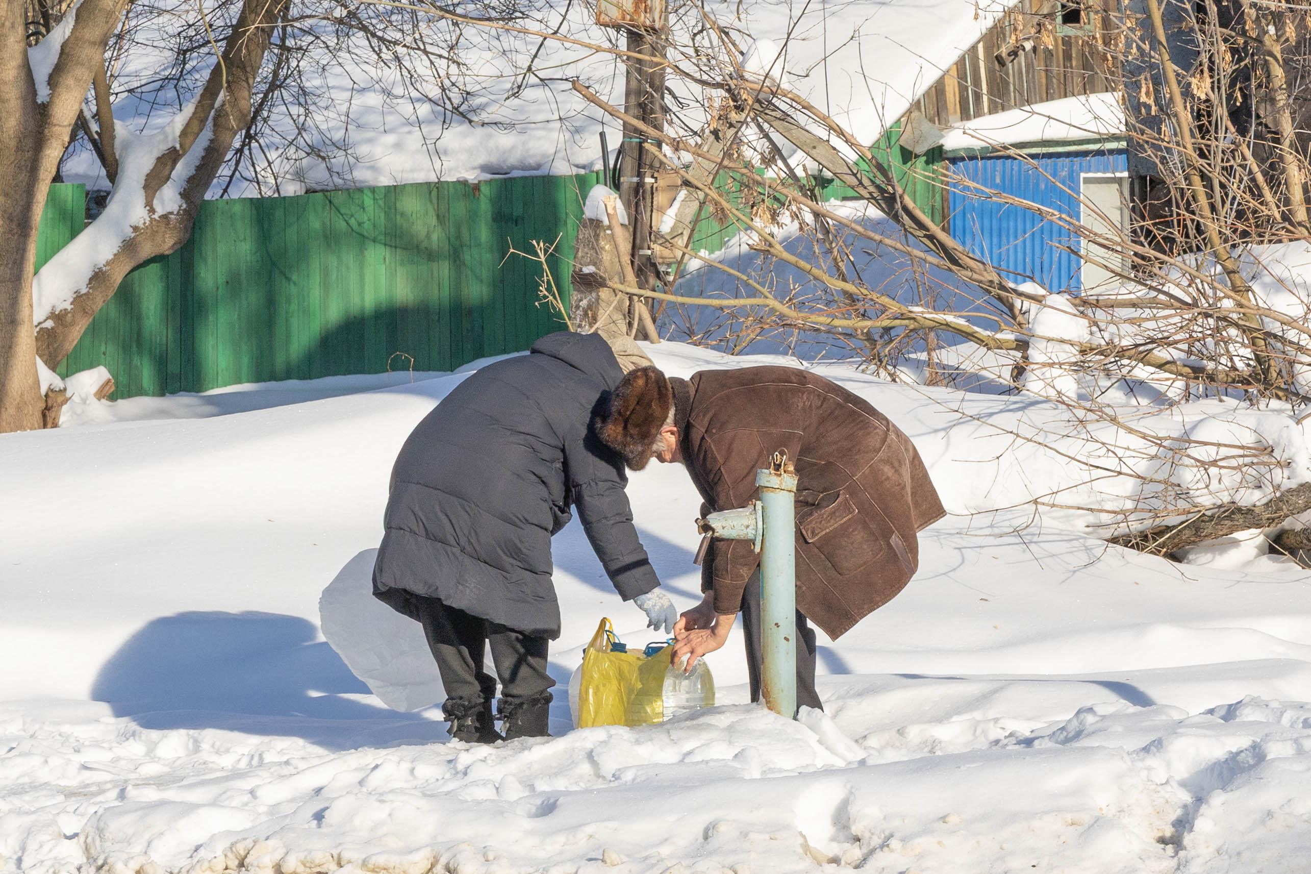 Водопровод есть не везде, поэтому установлена водоразборная колонка.