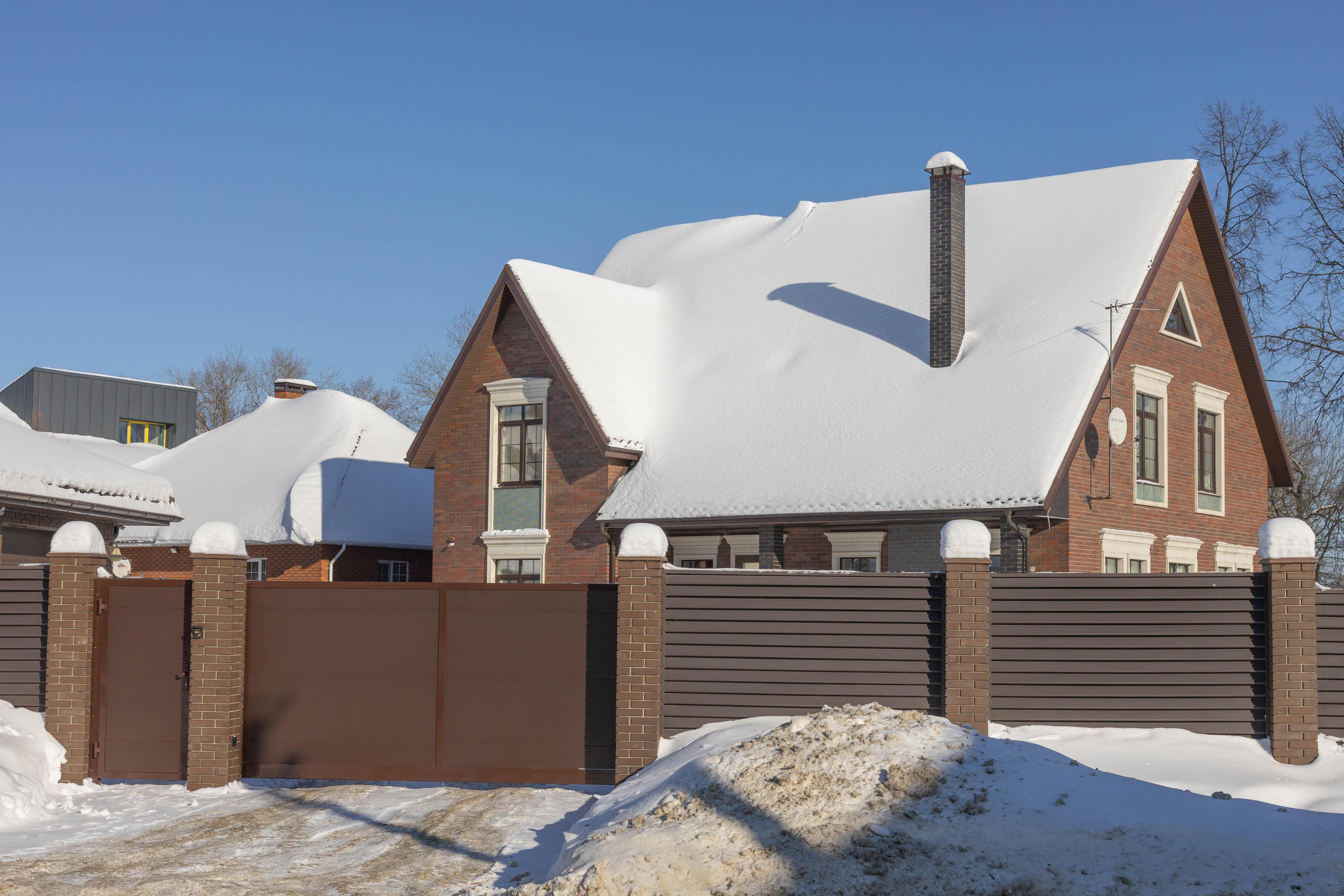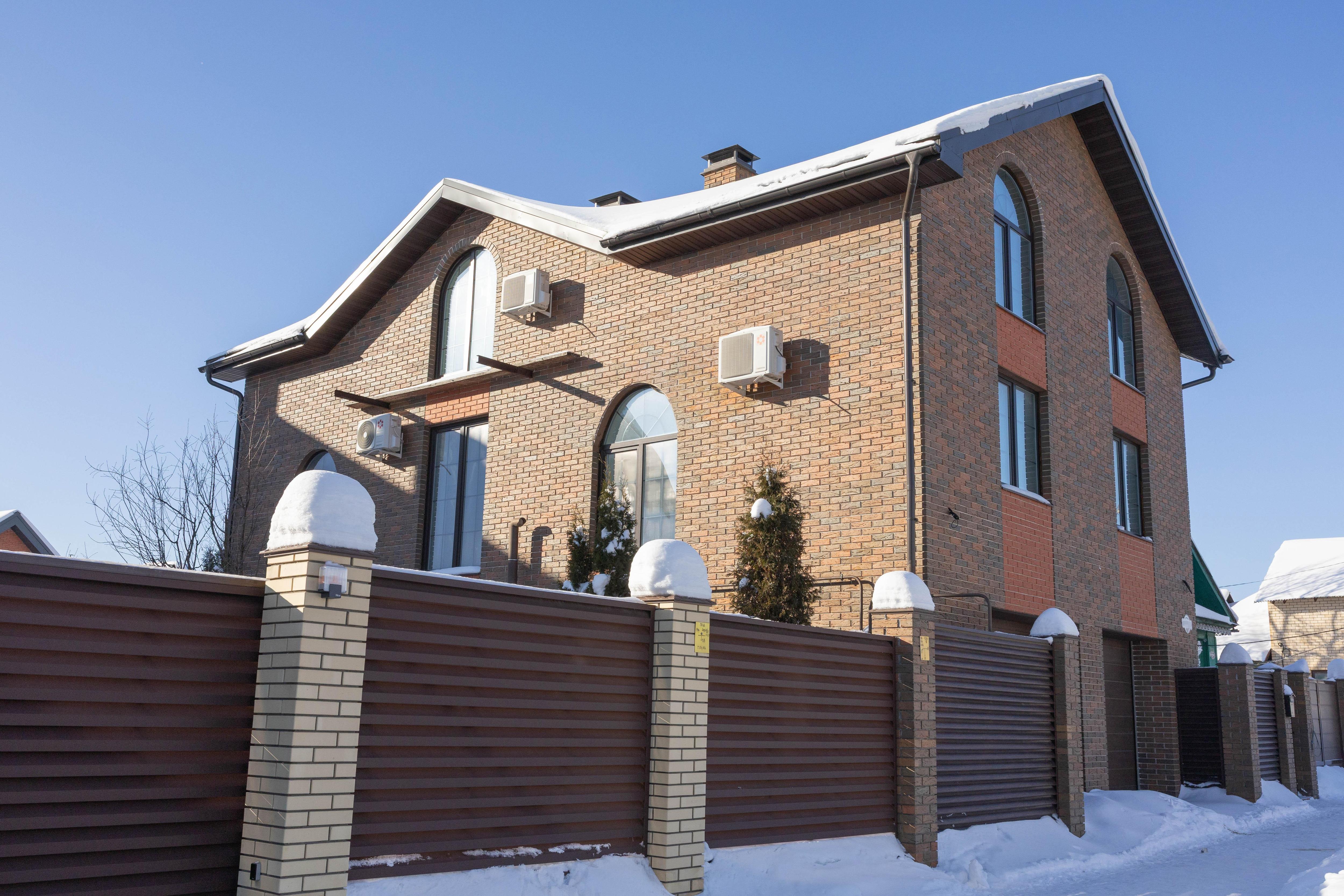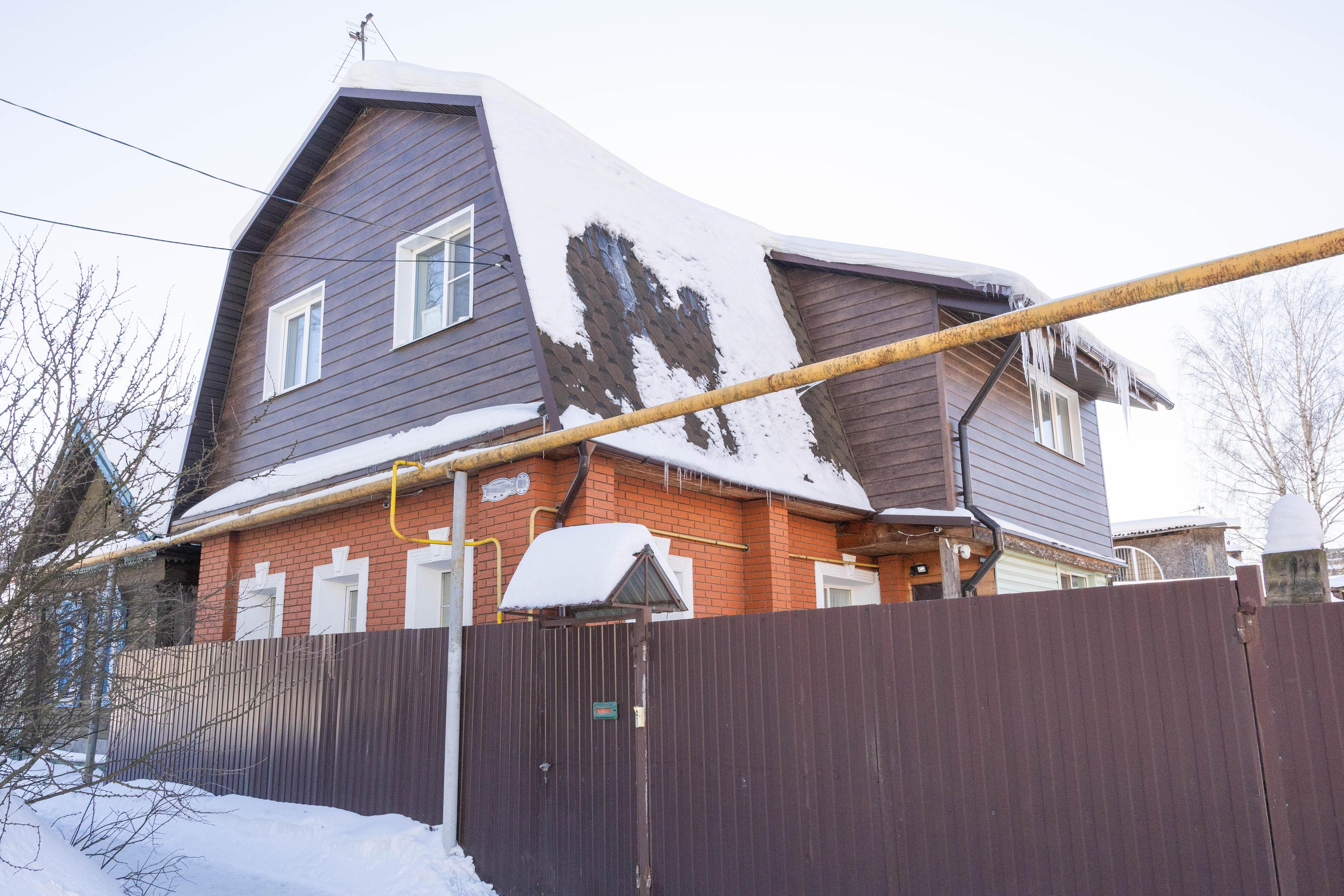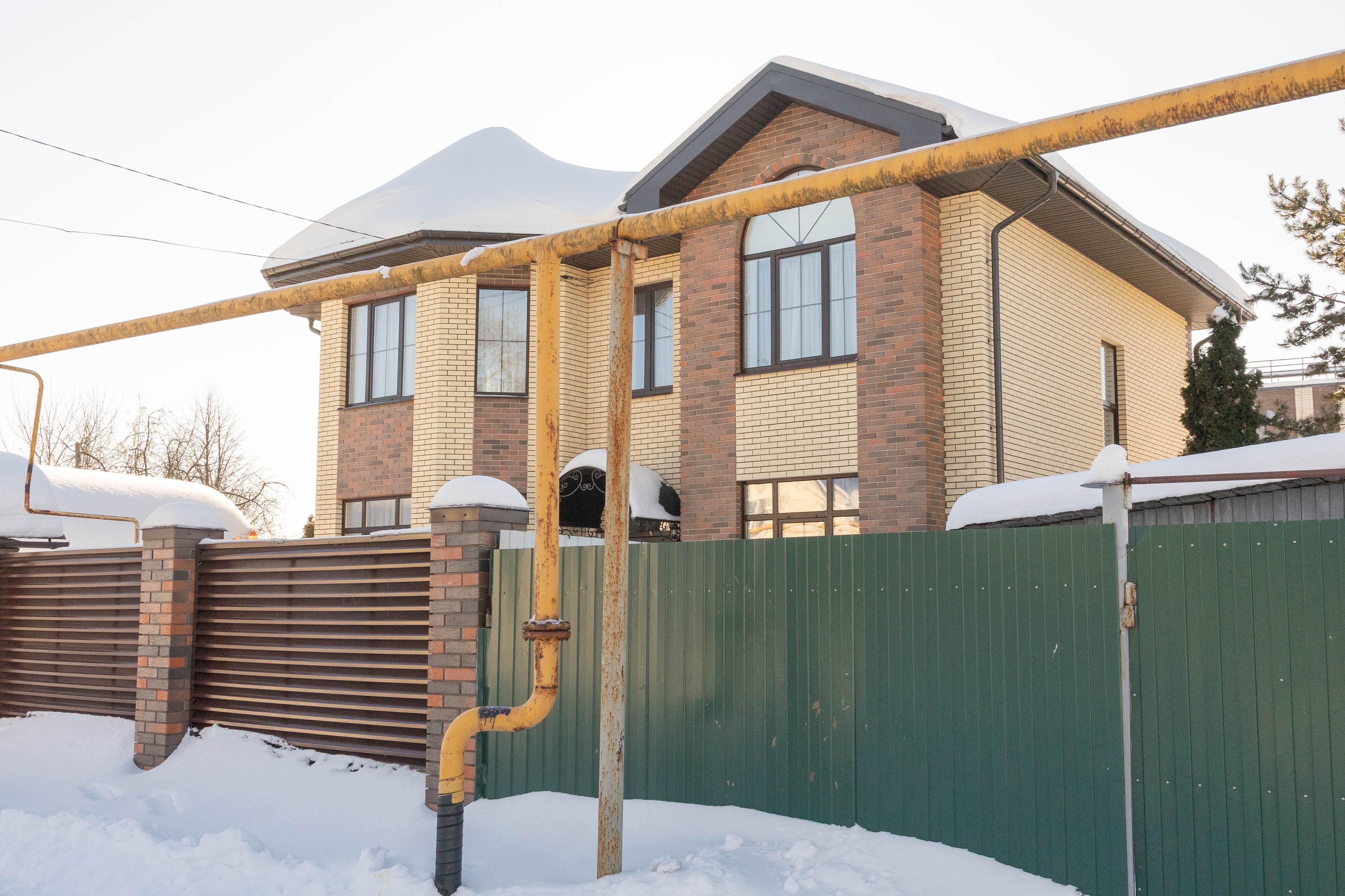 Крупный коттедж в городской черте, рядом проходит газопровод.