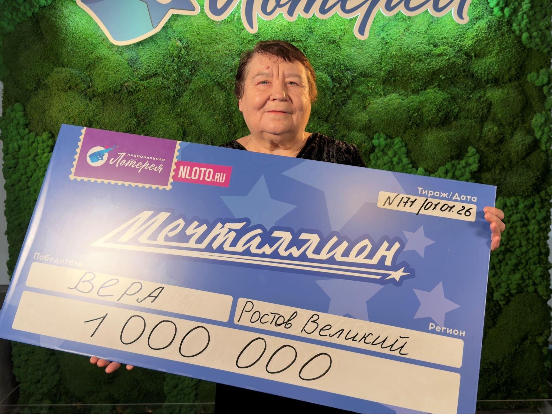 Жительница Ростова Великого в Ярославской области, пенсионерка Вера, получила выигрыш в размере одного миллиона рублей, участвуя в лотерее. На почте она приобрела четыре билета, относящихся к новогоднему тиражу «Мечталлиона».