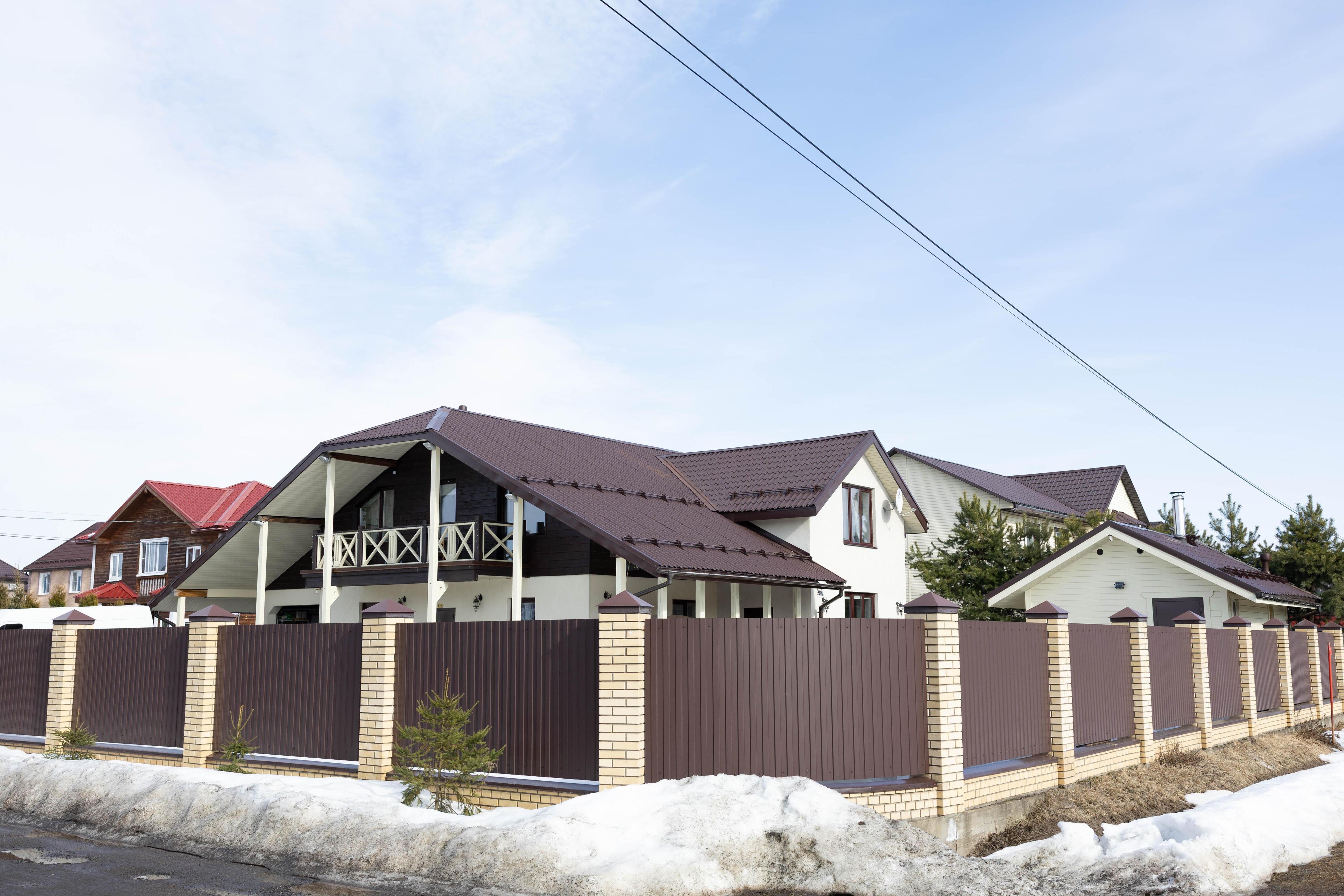 Многие коттеджи скрыты за металлическими заборами и живыми изгородями.