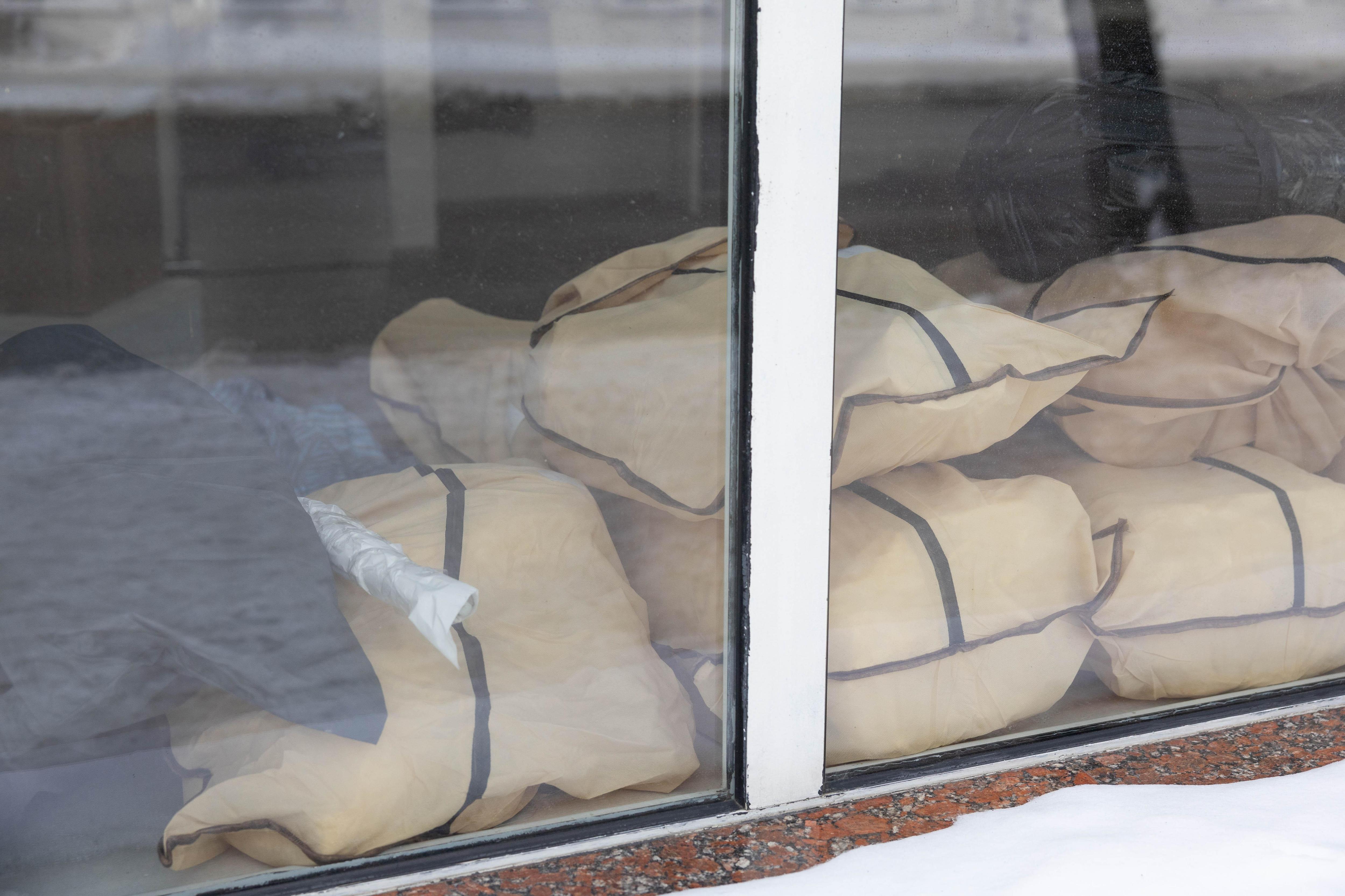Через окно видно, что внутри помещения идут ремонтные работы
