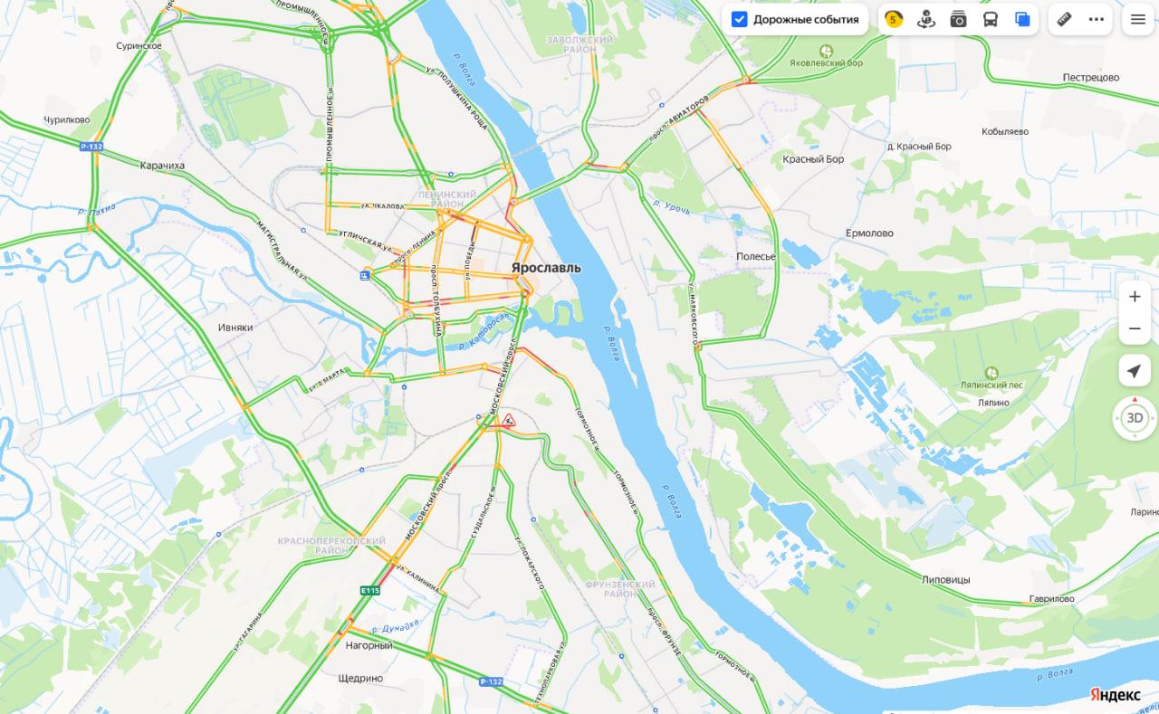 Участок Дорожной улицы в направлении от торгового центра также отмечен как перегруженный.