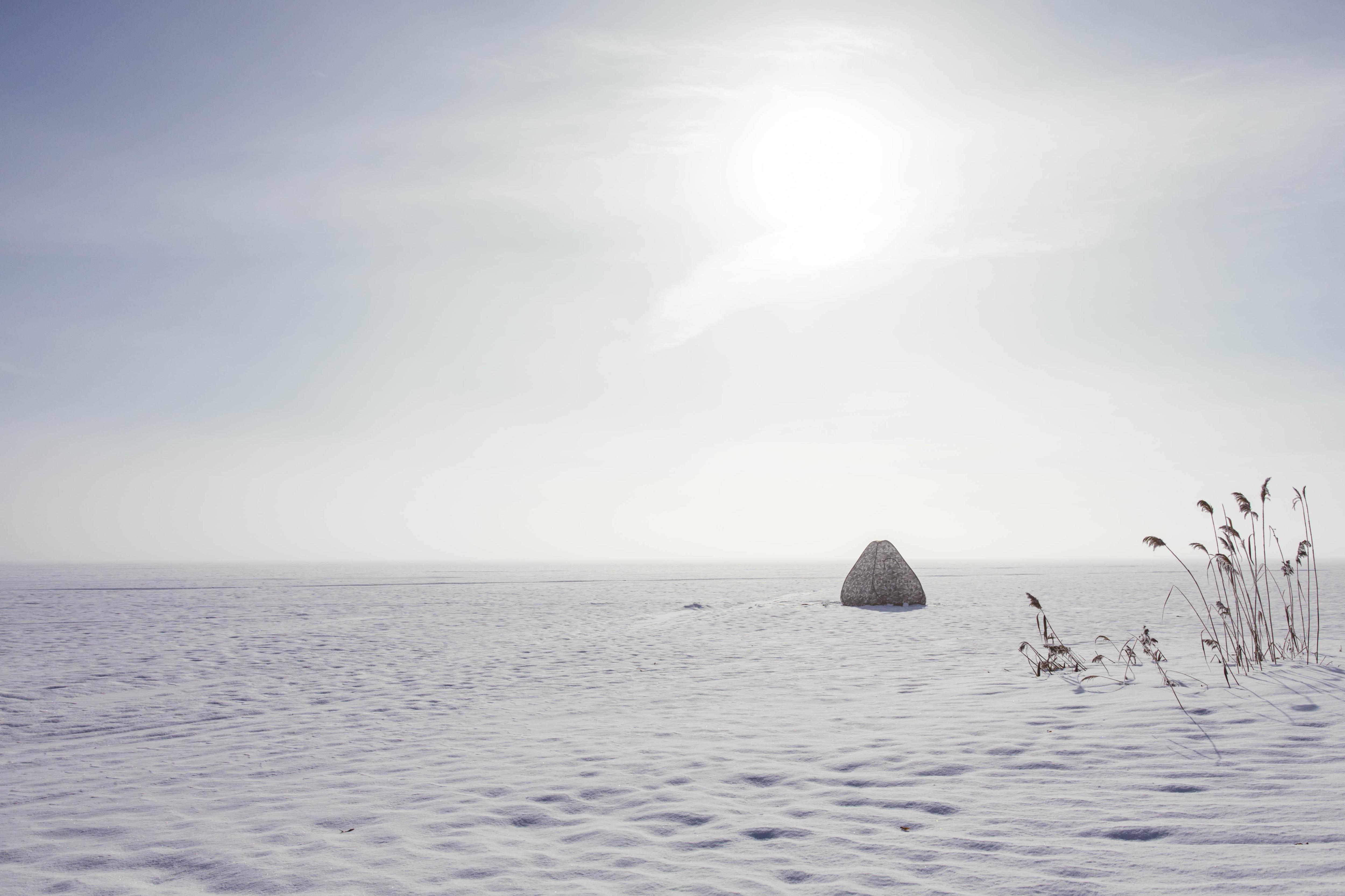 Одинокий рыболов устроился для зимней ловли у берега.