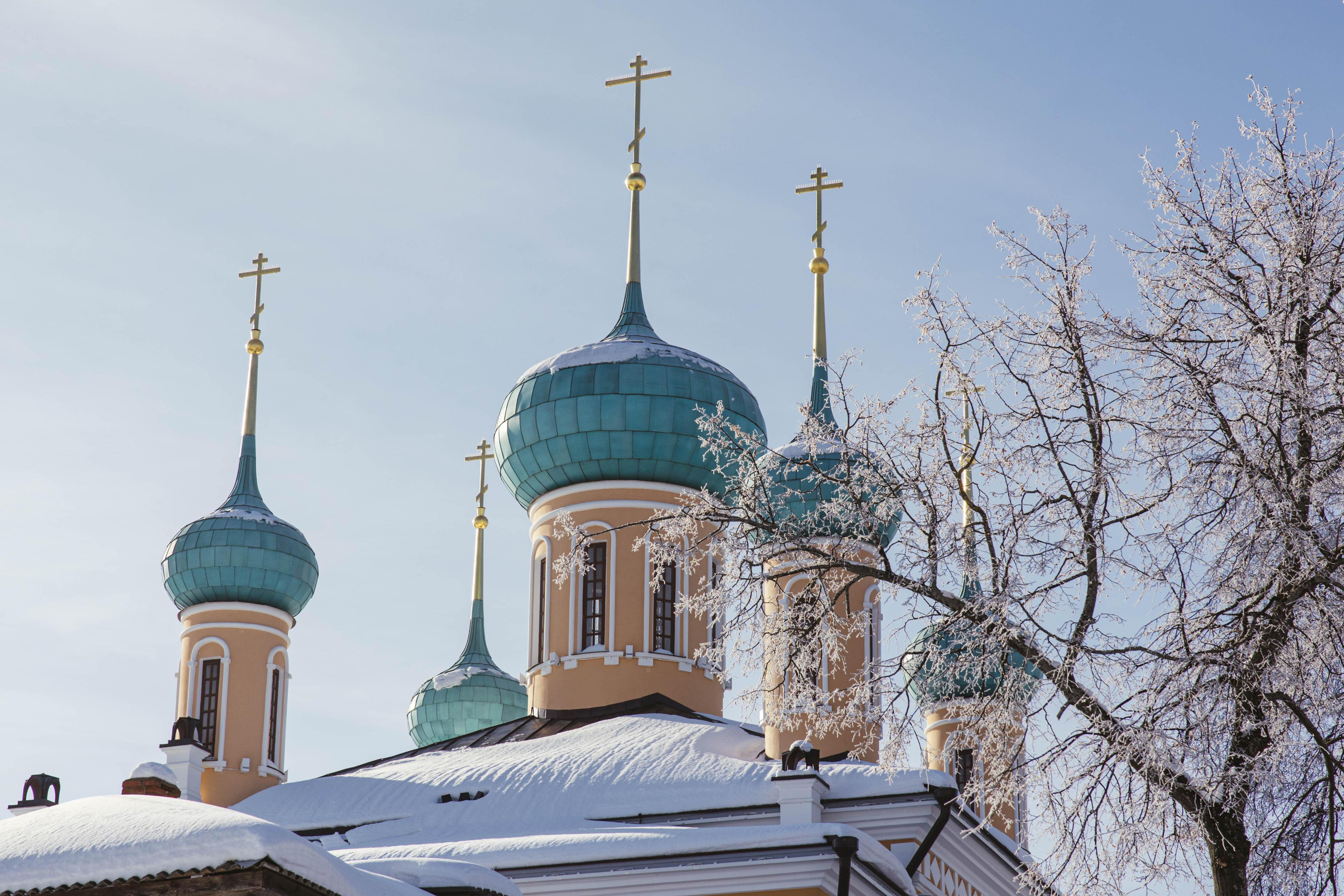 Вид на купола Тихвинской церкви.