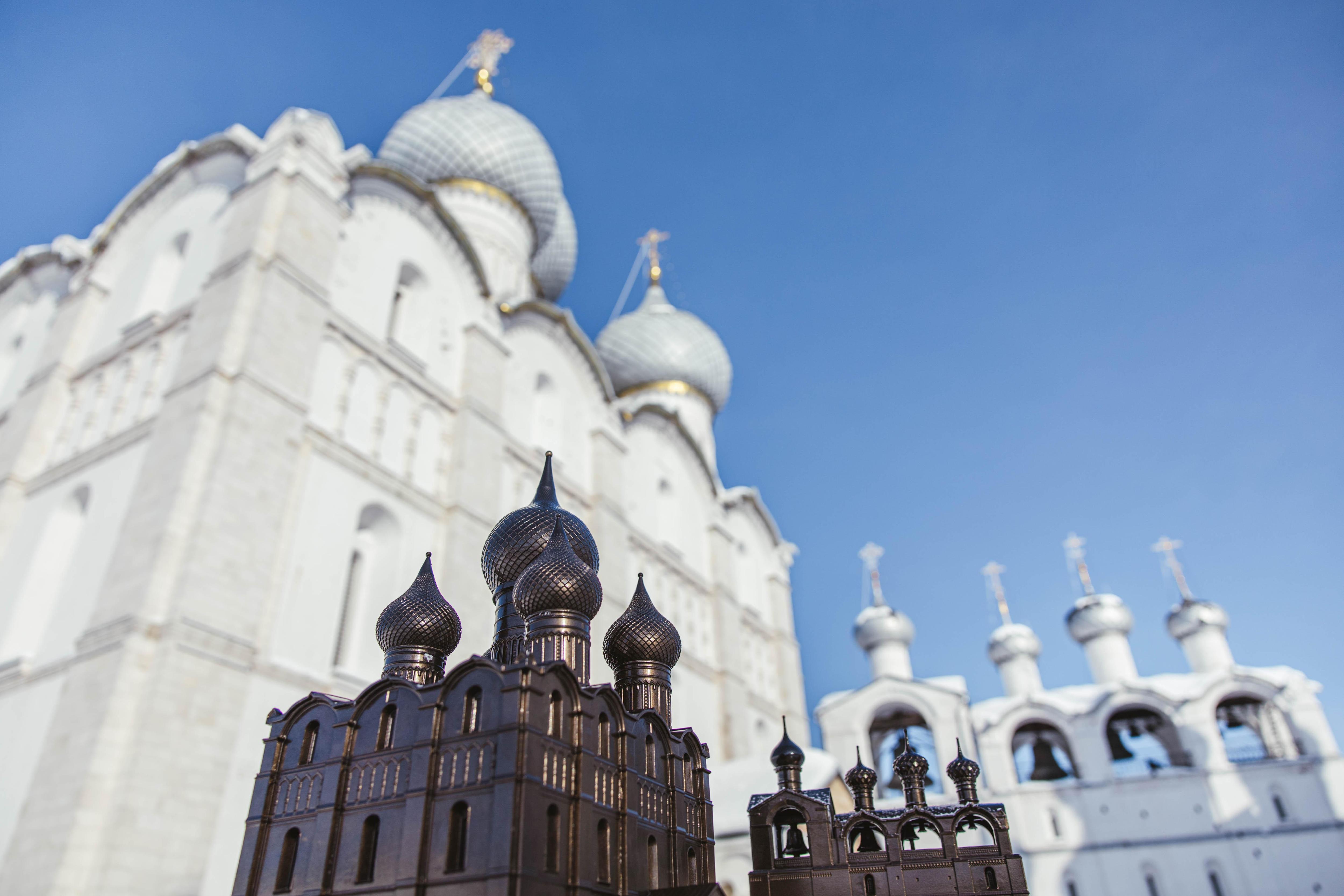 Миниатюрные модели Успенского собора и звонницы точно повторяют оригиналы.