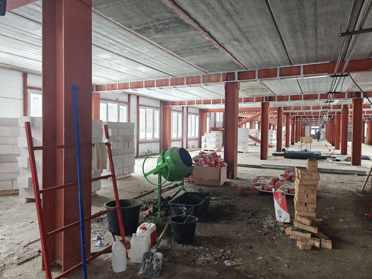 «В настоящее время на объекте завершен монтаж кровли, производится возведение шахты лифта, монтаж временной системы теплоснабжения», — сообщили в ведомстве.