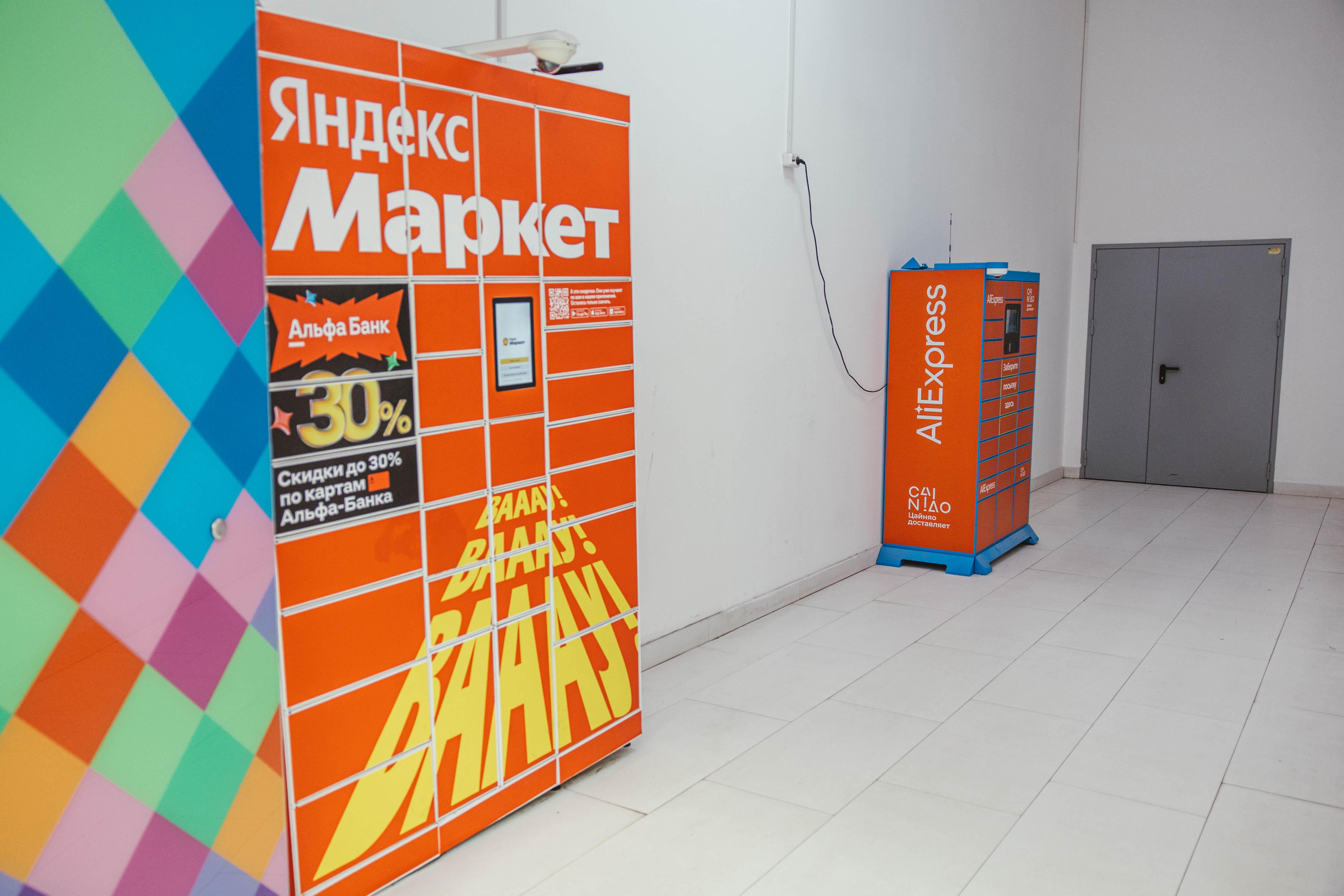 В торговом центре установлены постоматы для выдачи заказов.
