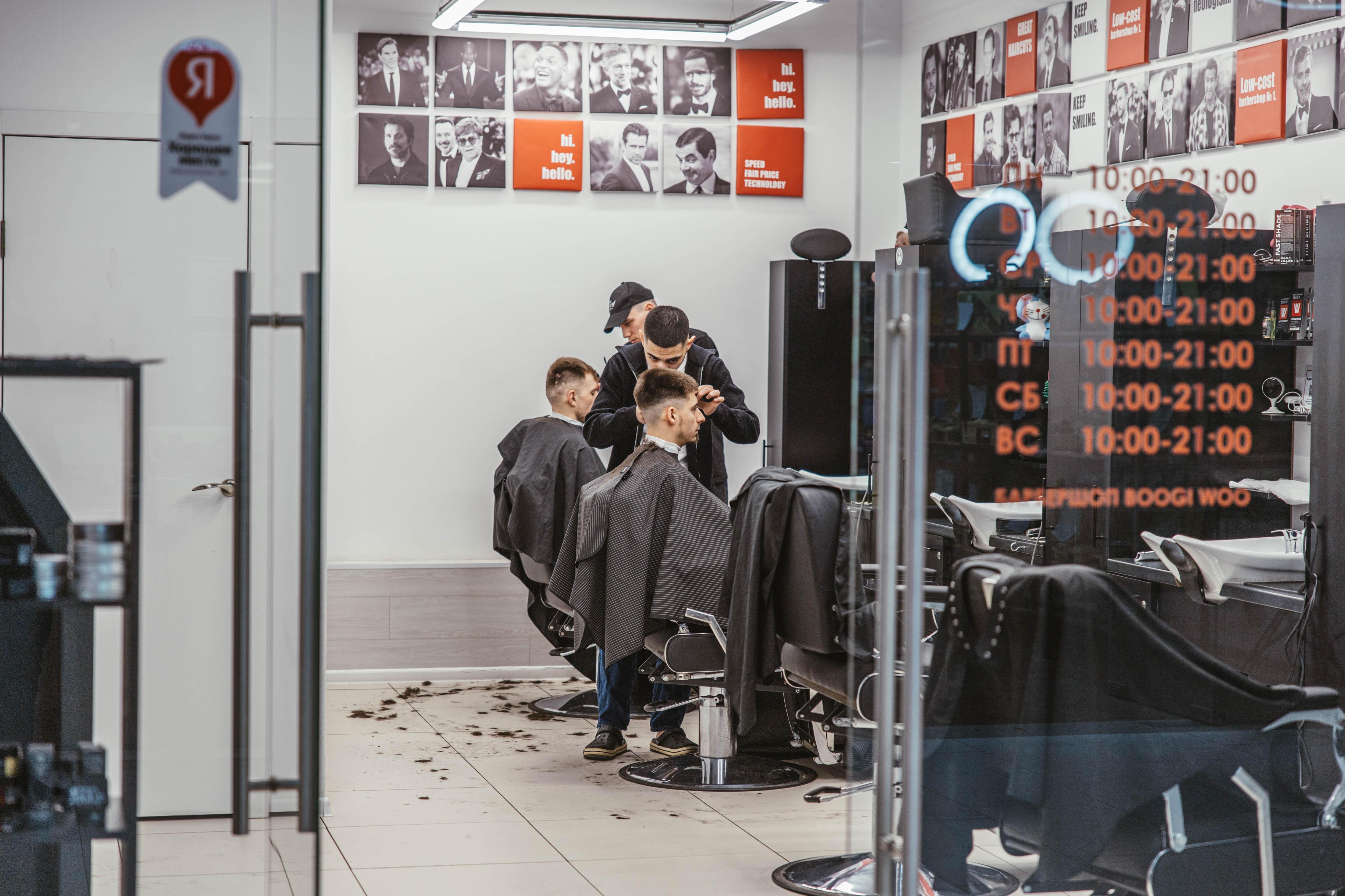 Среди магазинов расположен барбершоп.
