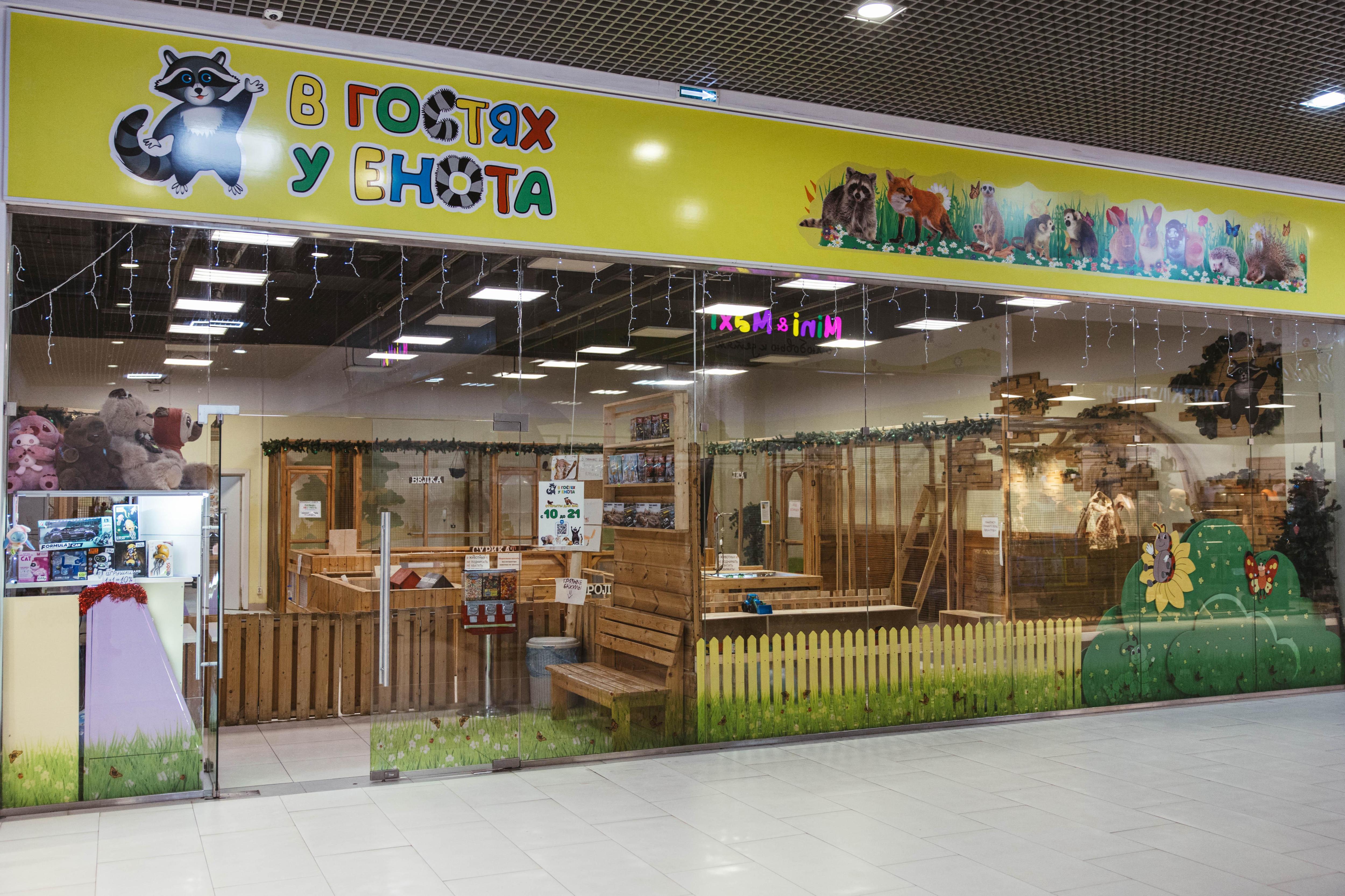 Рядом расположено пространство с животными, включая енота.