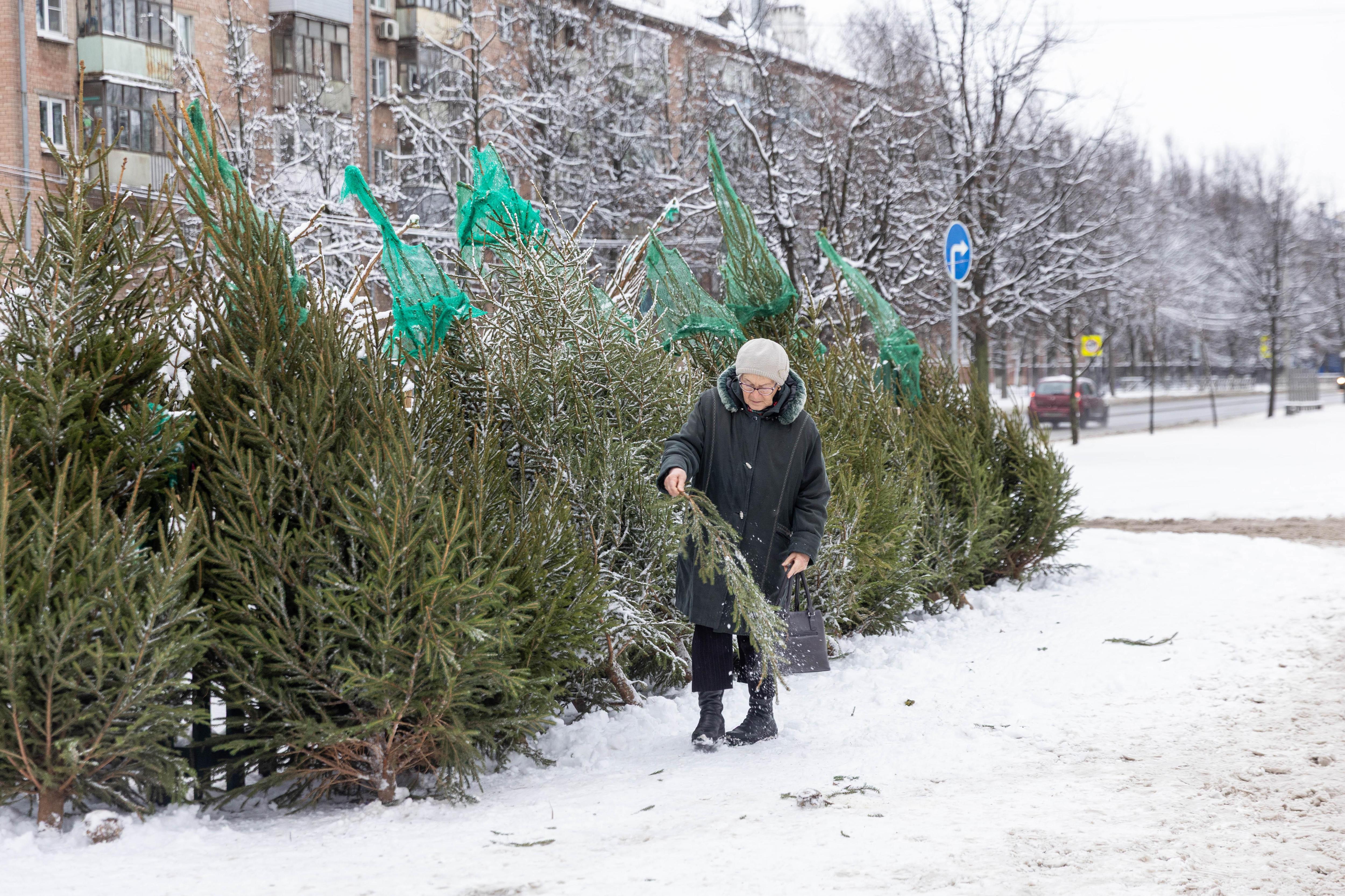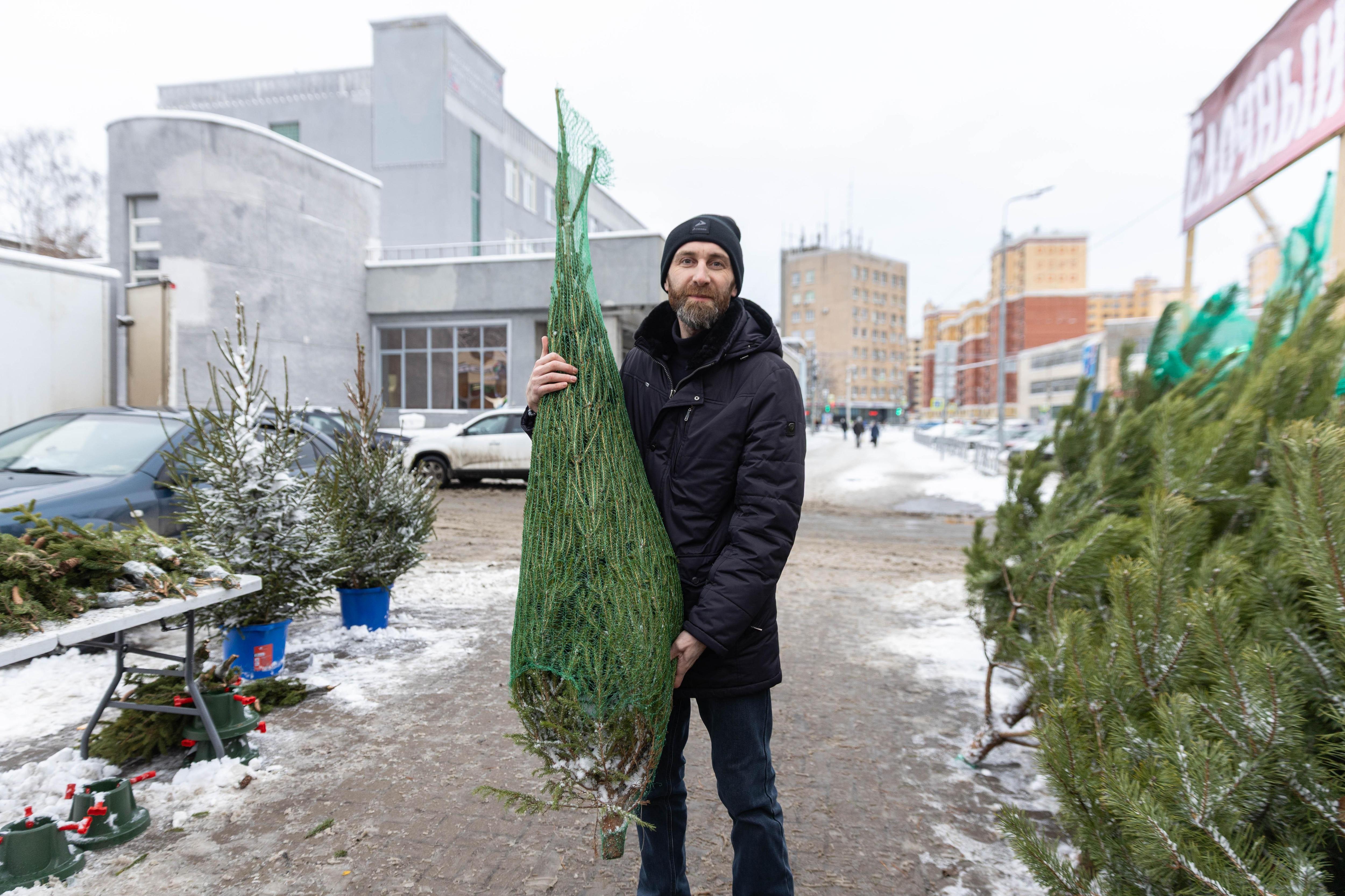 Посетитель с купленной елкой.