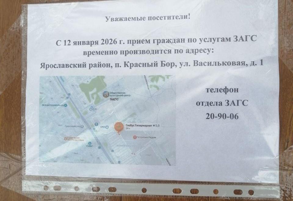 По информации местных жителей, активно обсуждающейся в социальных сетях, приём граждан в этом отделении не ведётся с 12 января 2026 года. Взамен ярославцам из Заволжского района предложено обращаться в отделение ЗАГС, находящееся в посёлке Красный Бор.