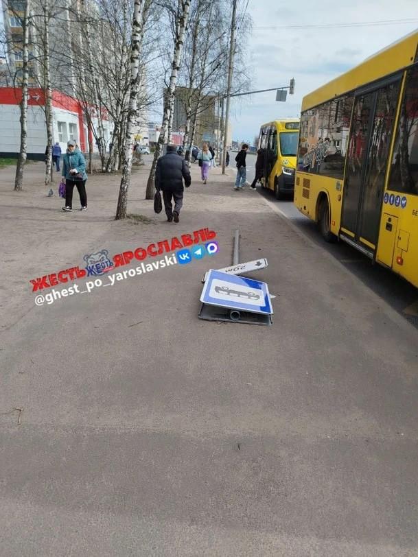 - На остановке «Проезд Доброхотова» в Заволжском районе рухнул дорожный знак.