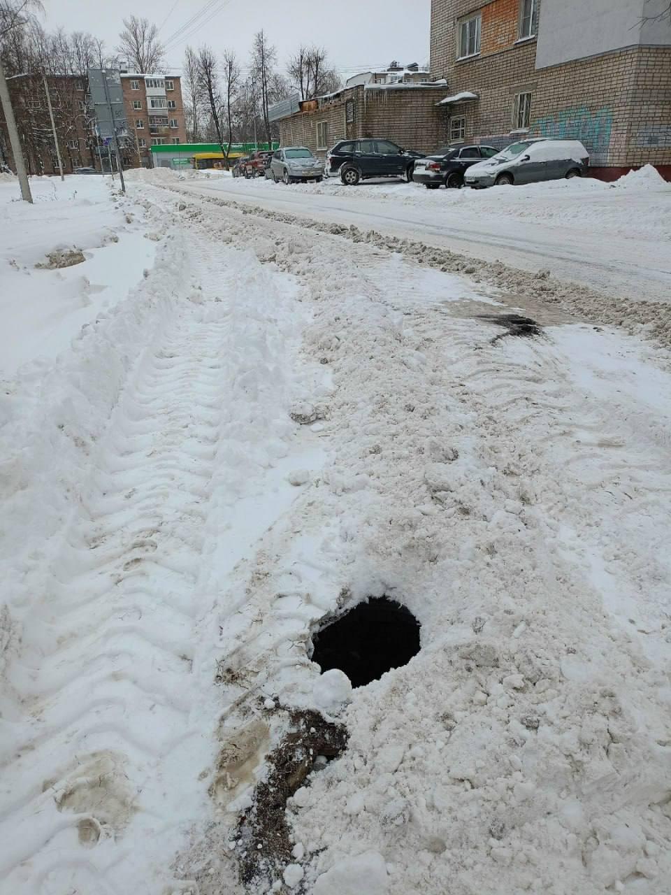 Одна из жительниц города написала в соцсетях: «На пересечении Шавырина и Урицкого (около дома Скорой помощи) раздавили люк, когда чистили снег. Глубина ямы около двух метров. Надо срочно ее закрыть, пока никто не провалился. Шла с ребенком. Хорошо, что увидела».