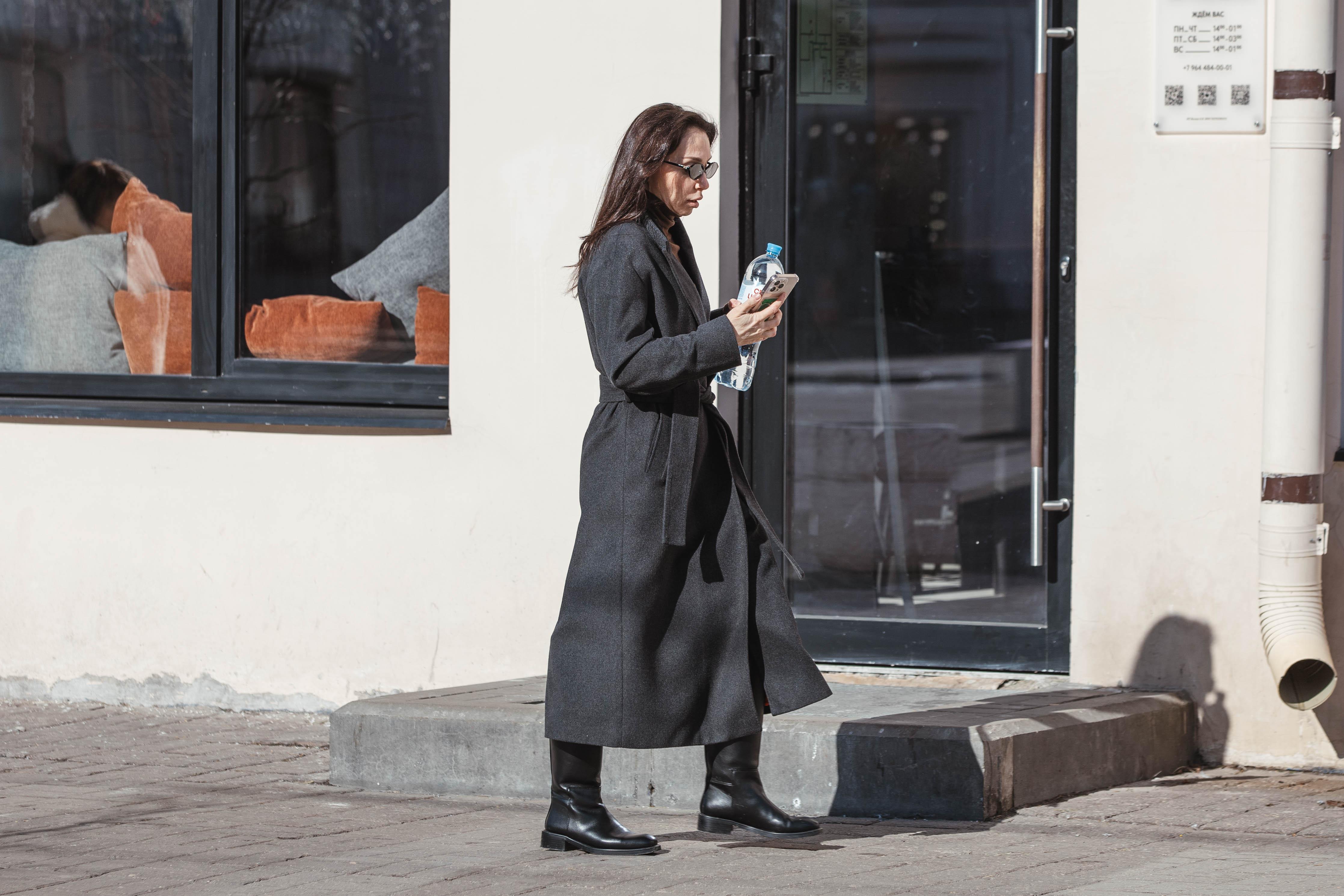 Сочетание пальто оверсайз и джинсов создаёт сдержанный городской образ.