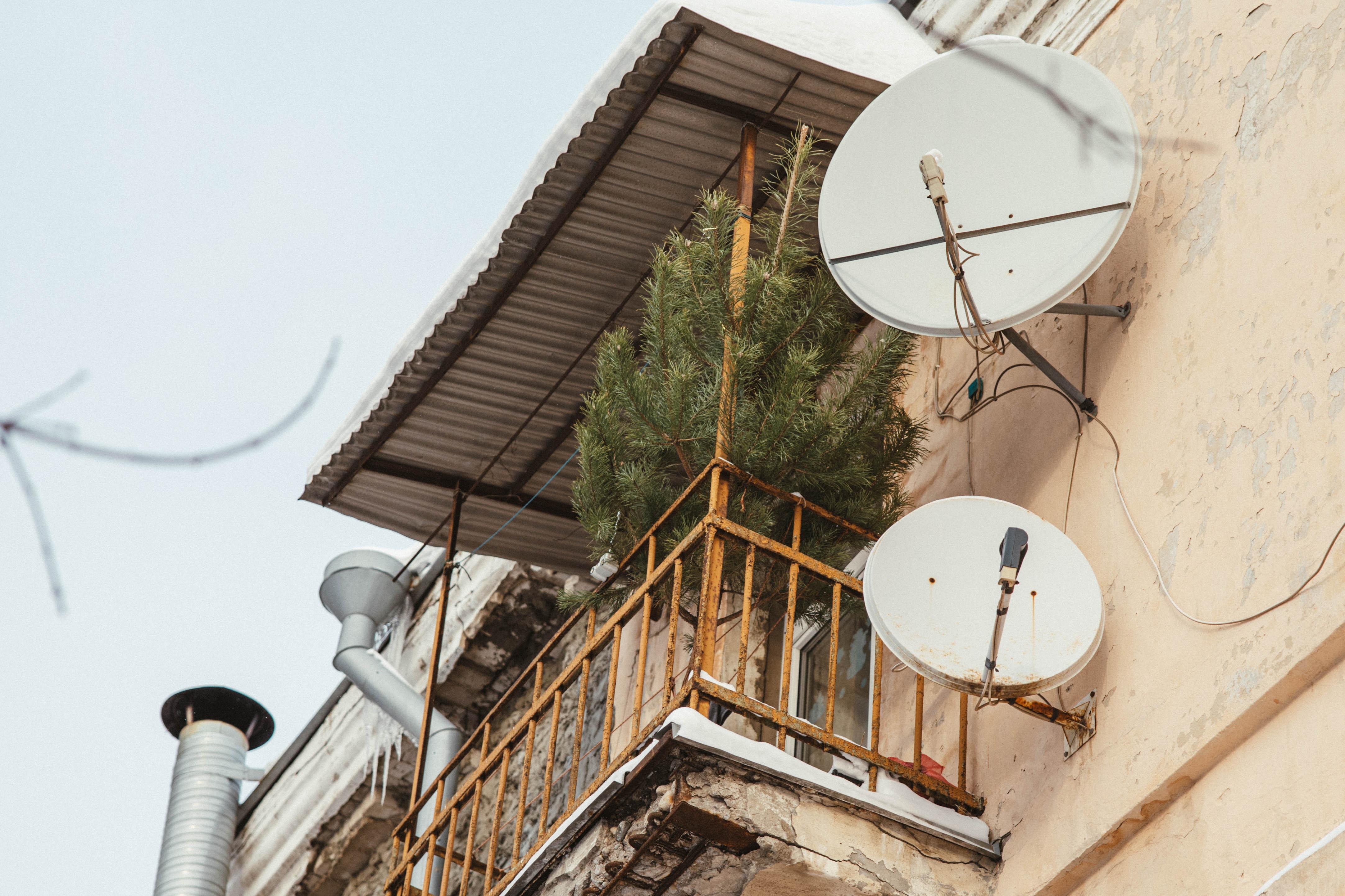 После новогодних праздников некоторые жители вынесли ёлки на балконы.