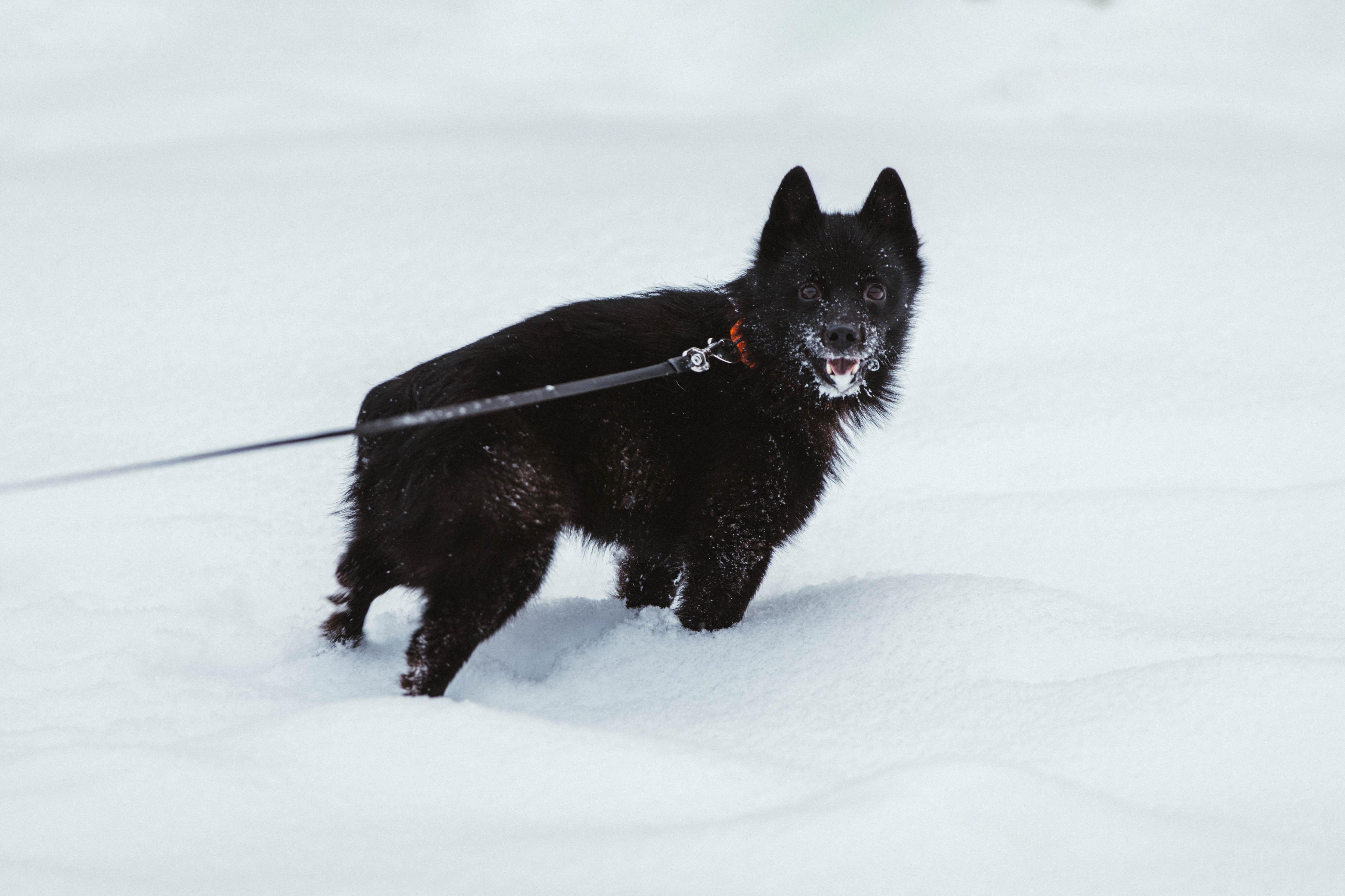 Собаки с восторгом бегают по мягким снежным сугробам.