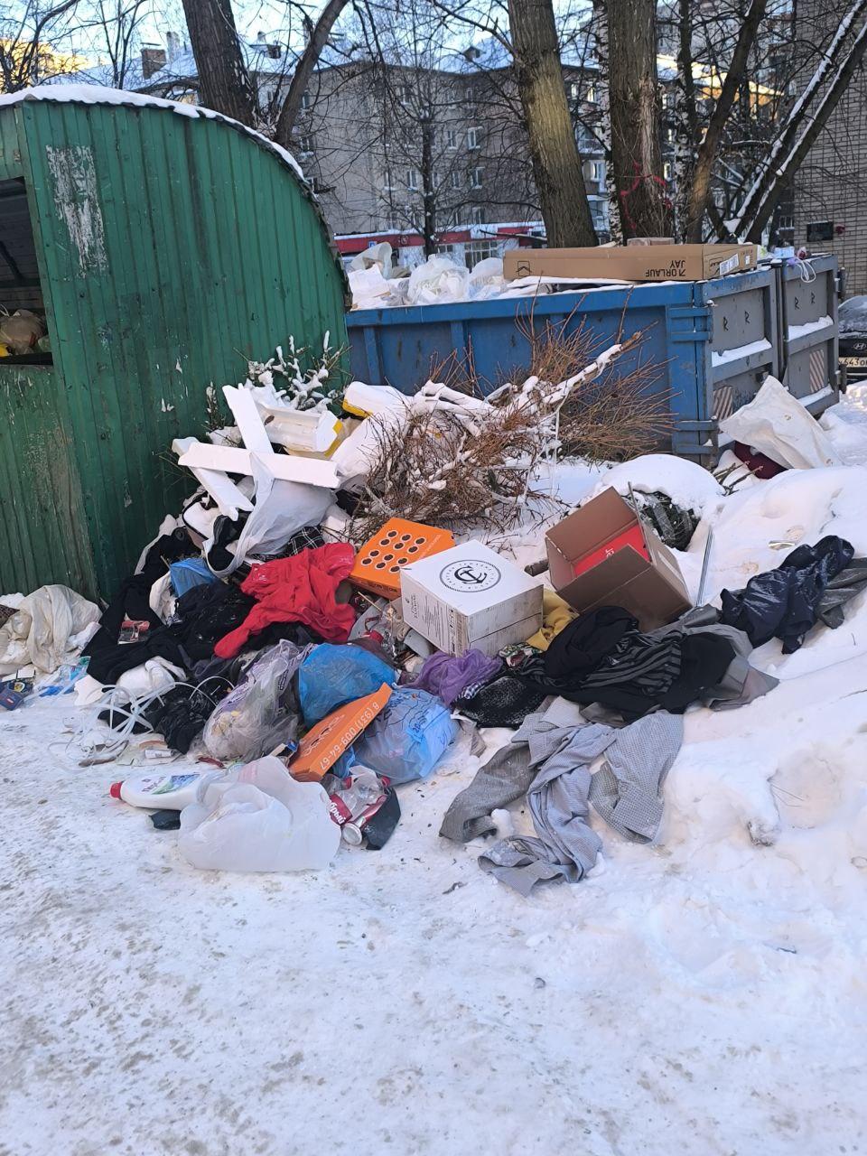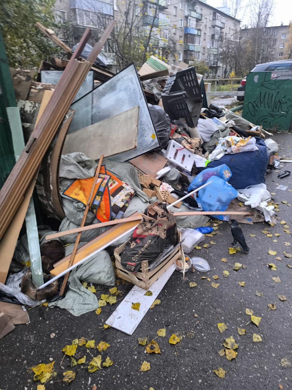 Мусор разбросан в непосредственной близости от контейнеров