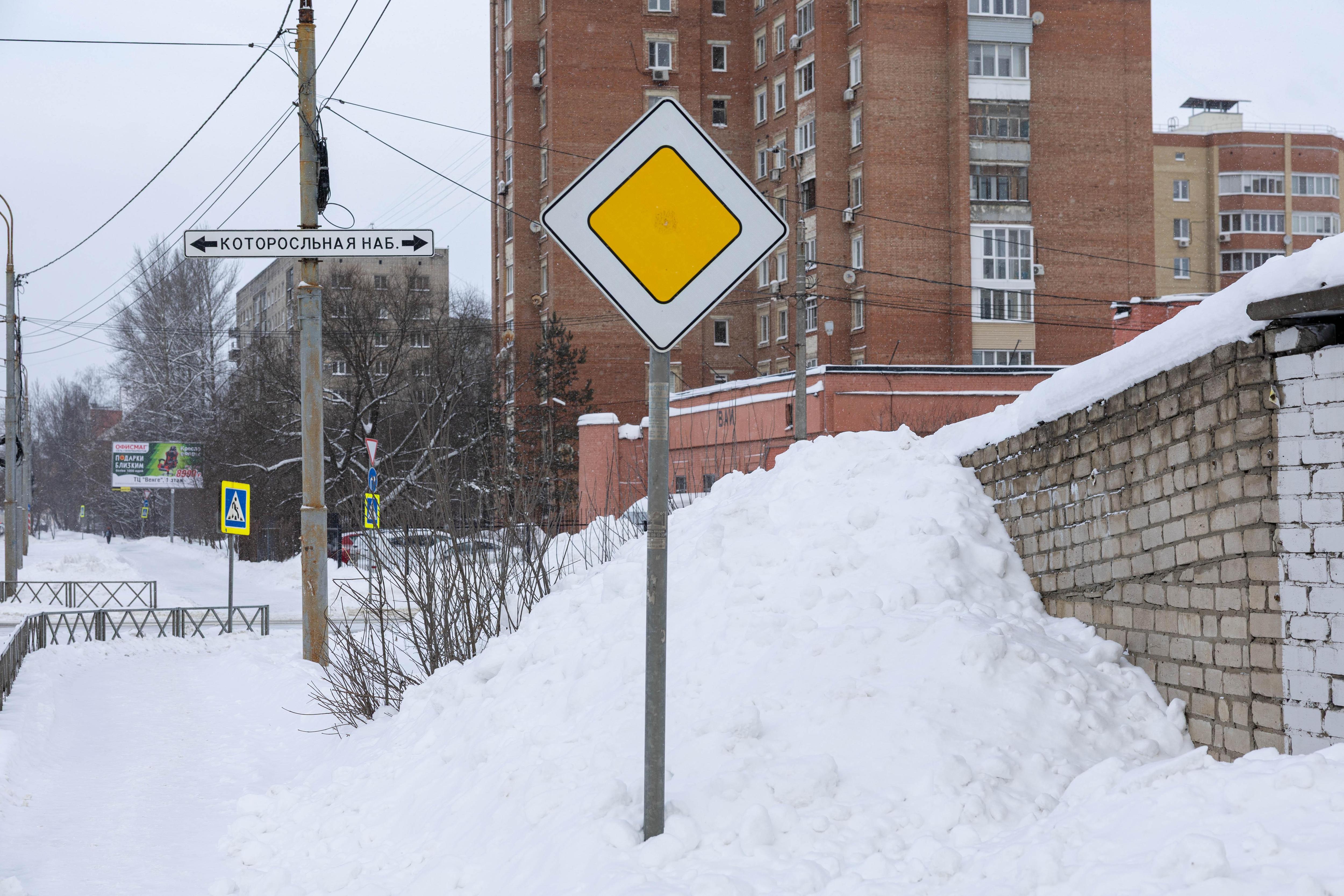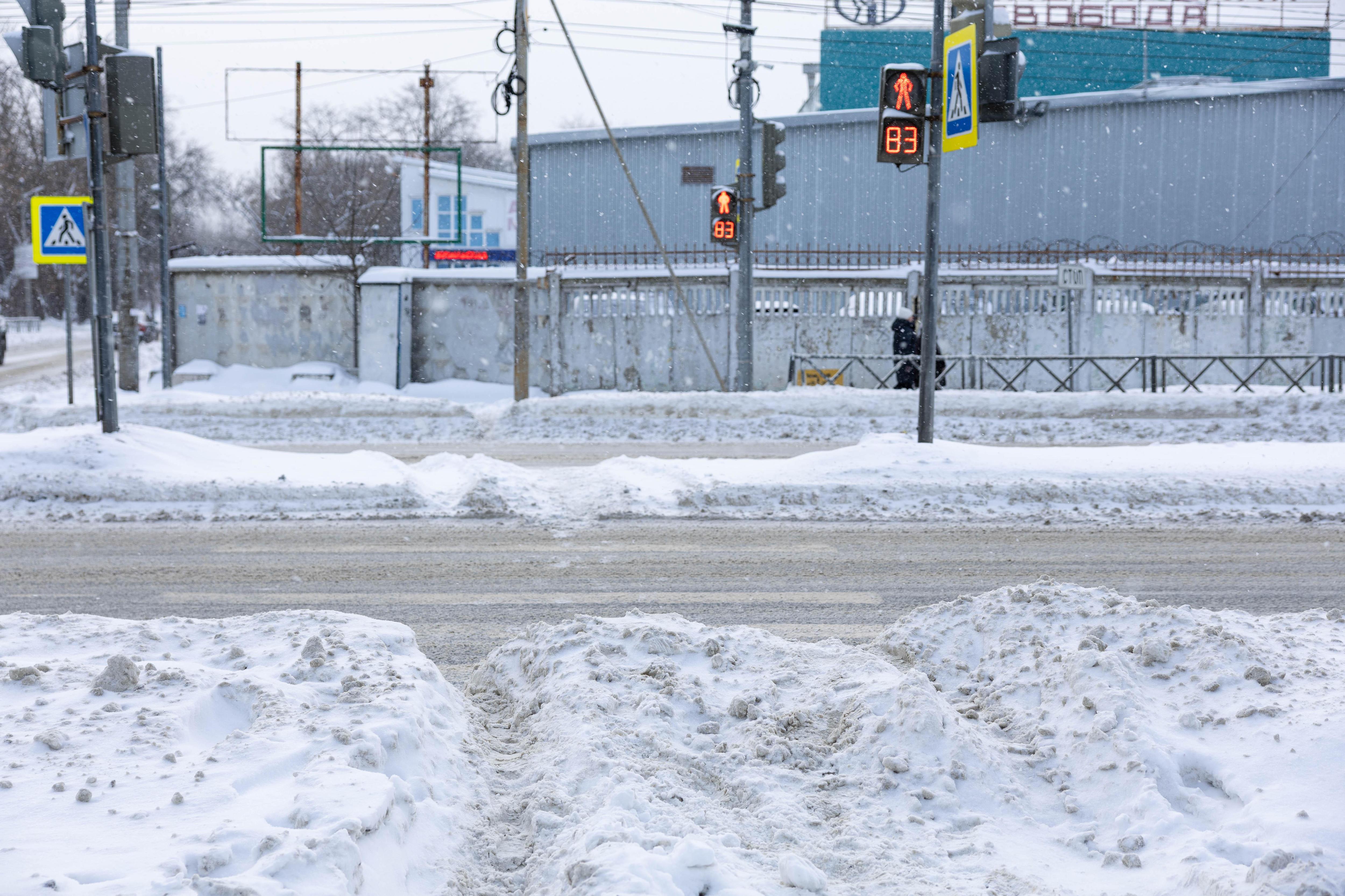 Снежные отвалы вдоль дорог местами достигают высоты в метр.