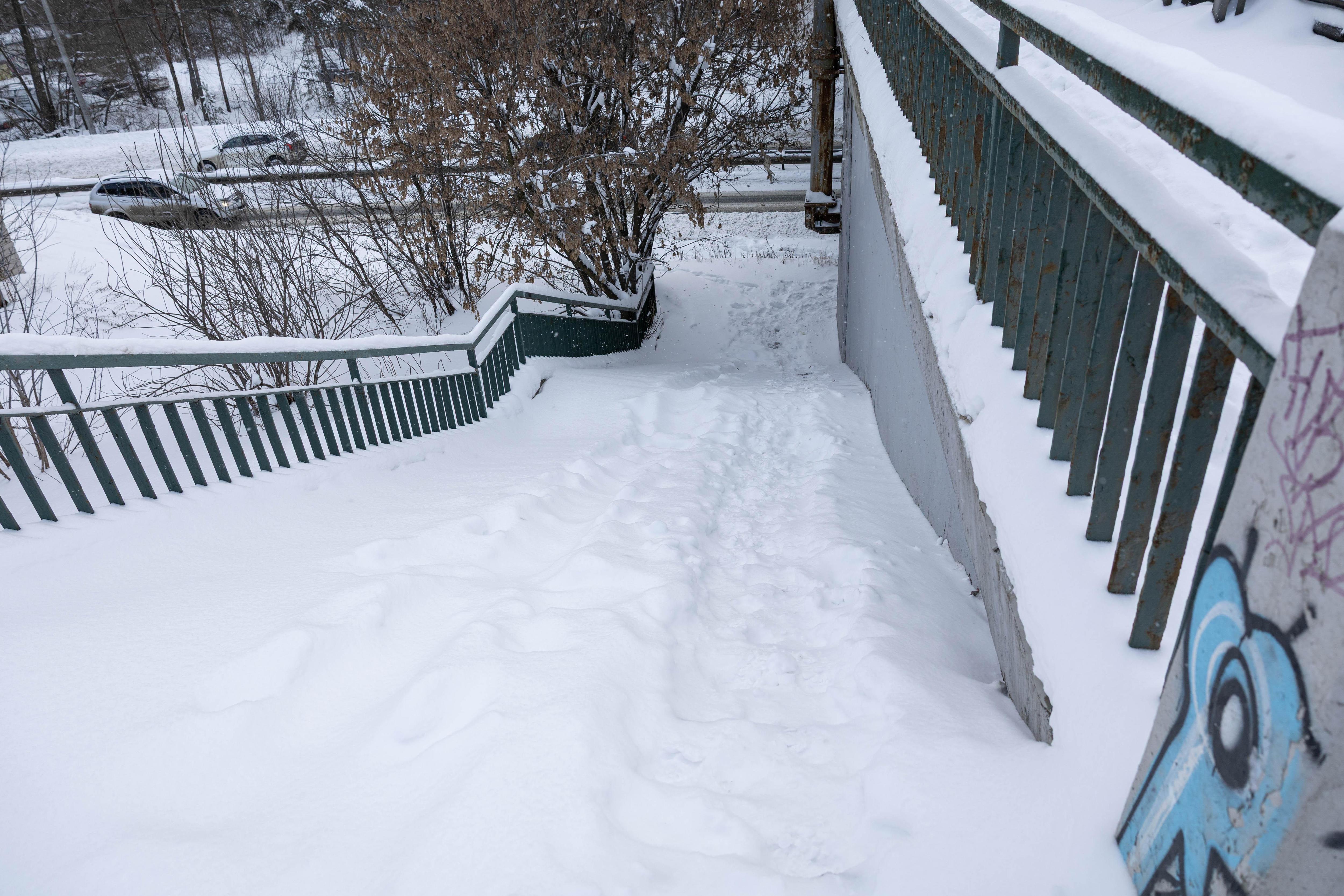 Спуск по лестнице легче осуществить на санках.