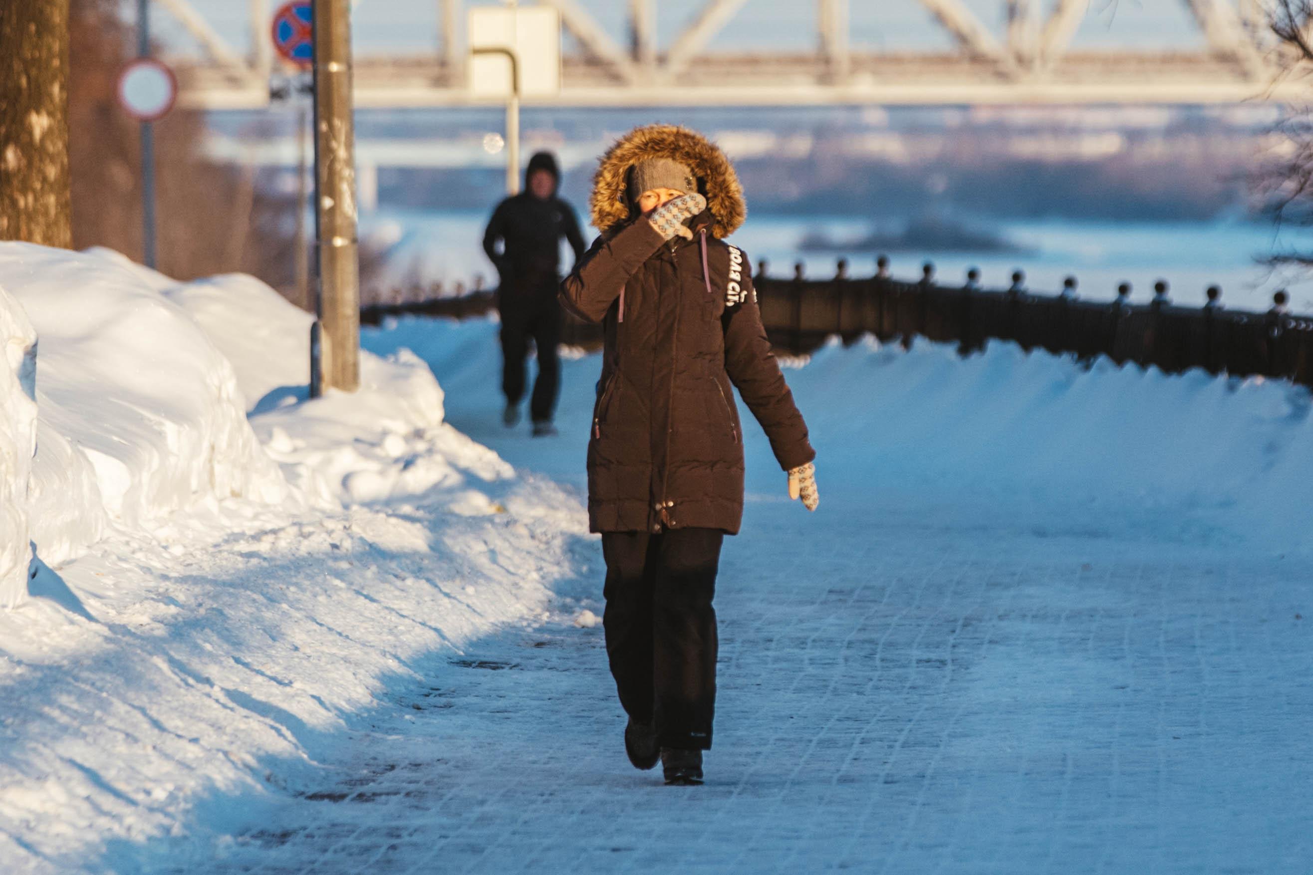 От мороза щиплет кожу, и многие плотнее заматываются в шарфы.