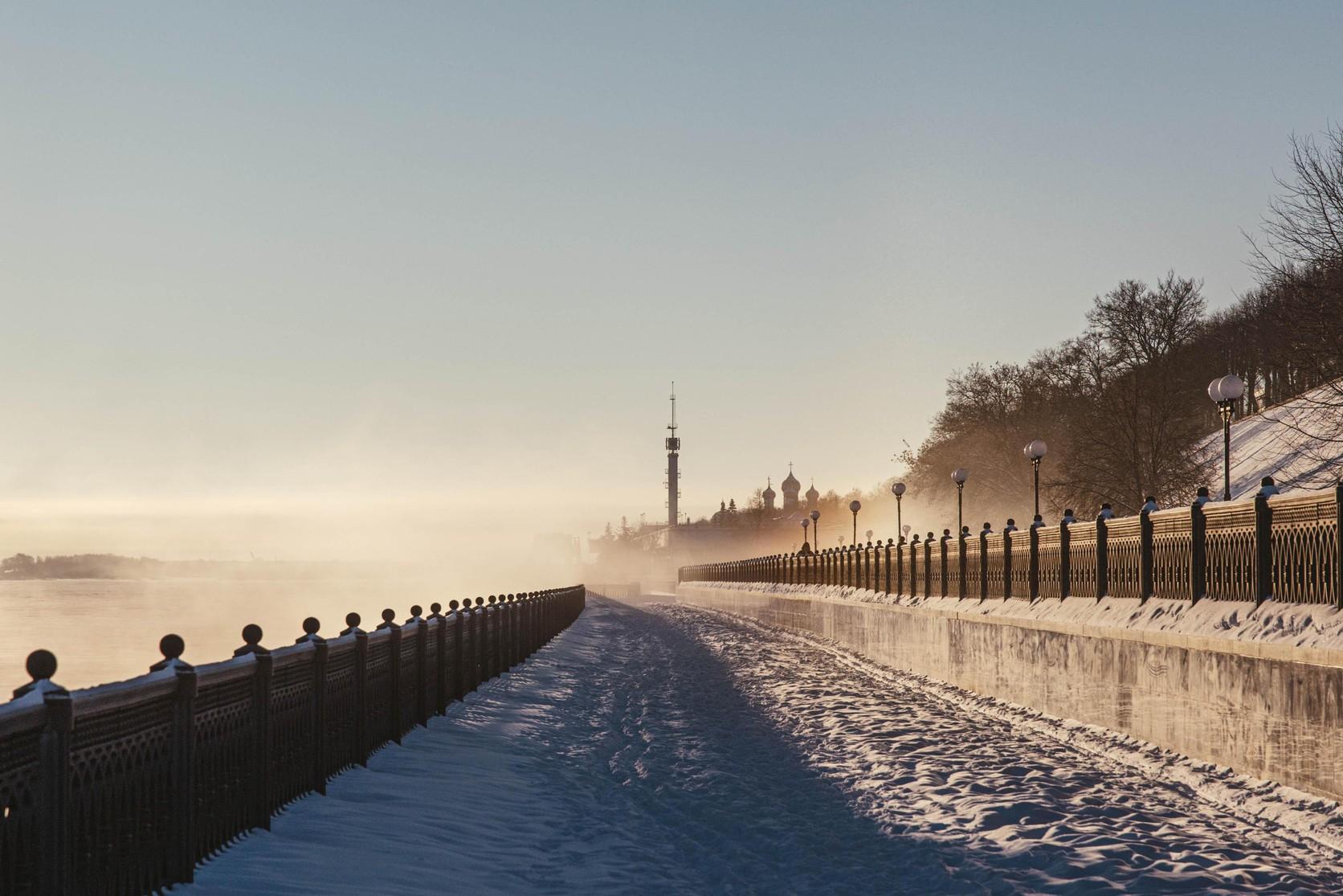 Волжская набережная предстаёт в своём самом живописном зимнем облике.