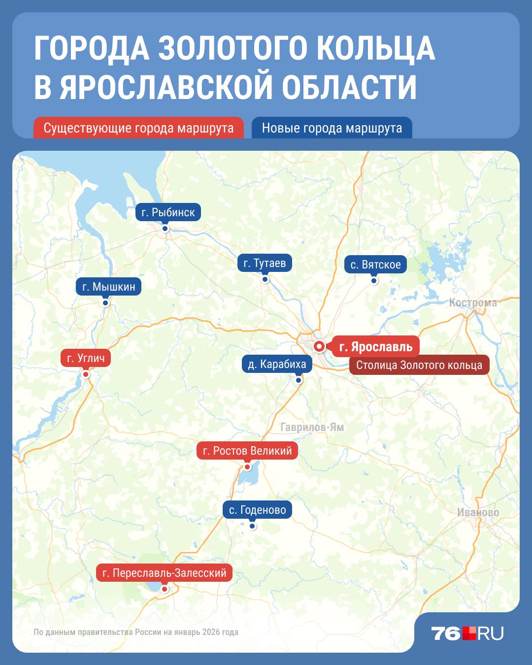 Правительство Российской Федерации утвердило расширение маршрута «Золотое кольцо», добавив к нему 49 населенных пунктов. Столицей проекта по-прежнему остается Ярославль.