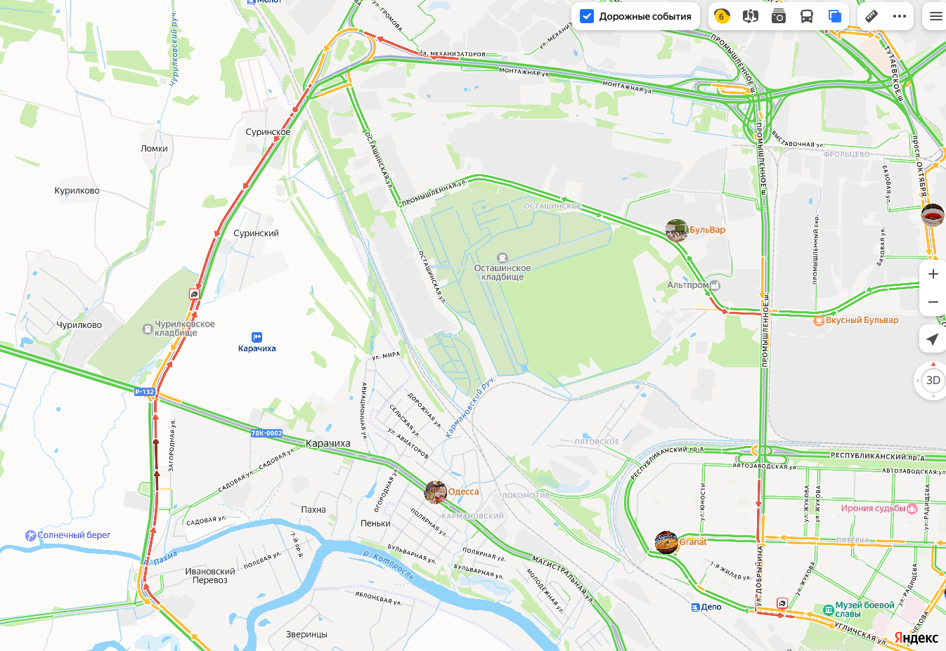 Данные «Яндекс.Карт» показали, что полосы движения в сторону Брагина и Кресты были отмечены красным цветом из-за пробок. К 10:45 движение на дороге стало свободнее, что свидетельствует об устранении последствий ДТП.