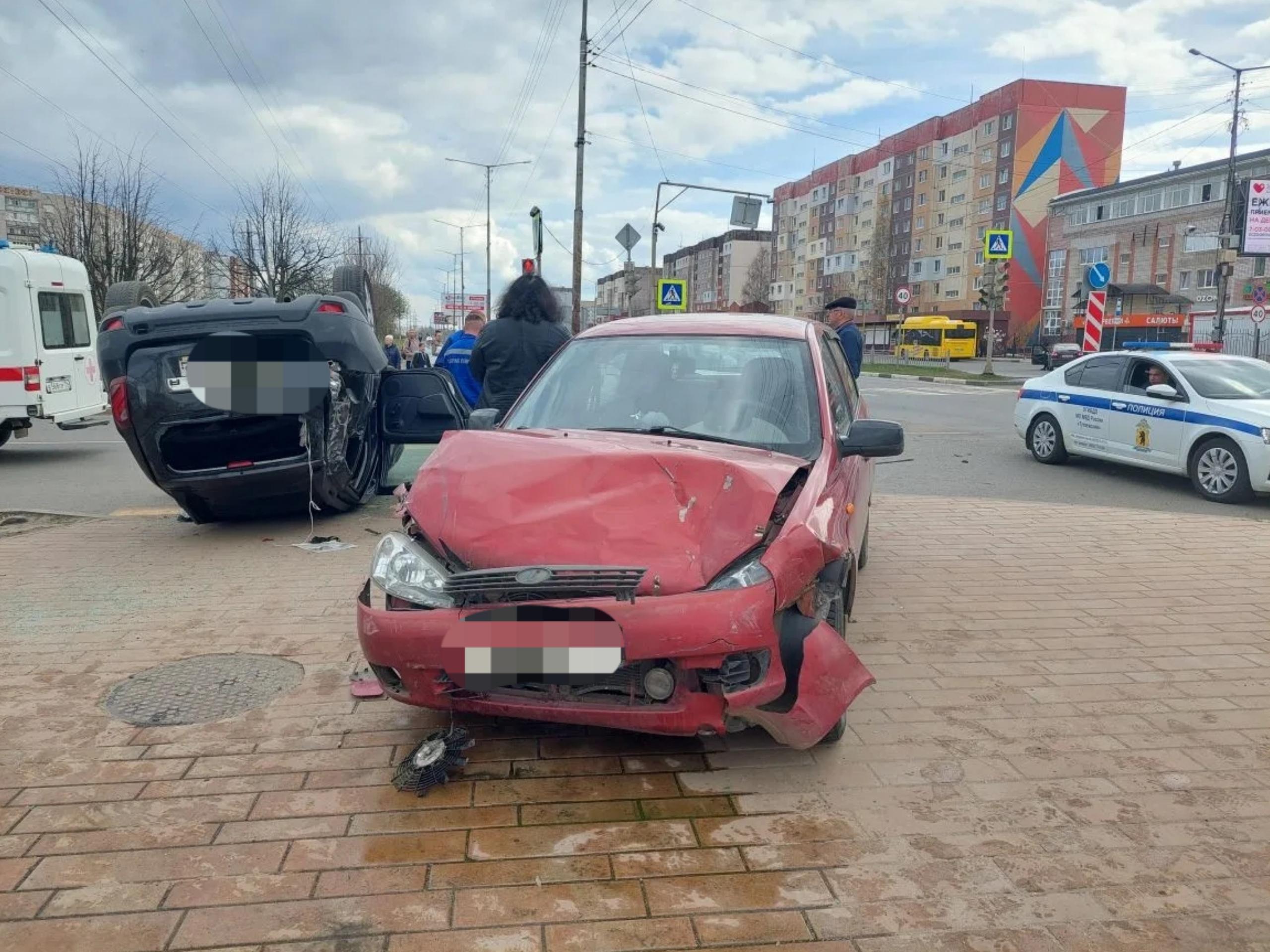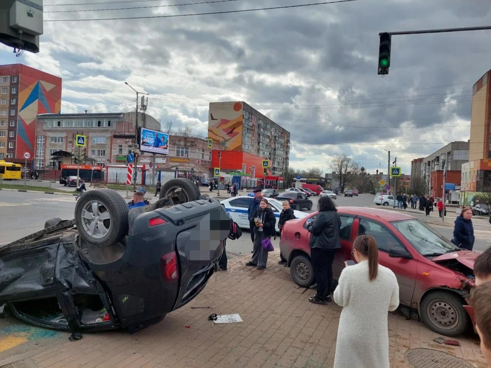 ДТП в Тутаеве: одна машина перевернулась, вторая на тротуаре