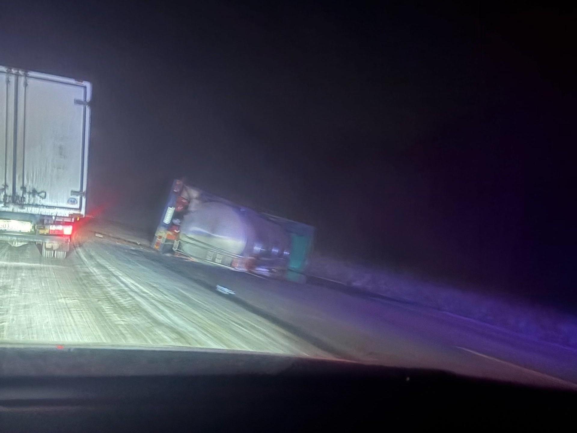 Столкновение двух грузовиков — «Вольво» и «Джак» — произошло в Ярославской области на федеральной трассе М-8 24 декабря в 04:13. Инцидент случился на территории Гаврилов-Ямского района. Очевидцы, опубликовавшие фото и видео с места, зафиксировали, что одна из машин оказалась лежащей на боку. По их словам, неподалёку находится второй грузовой автомобиль.
