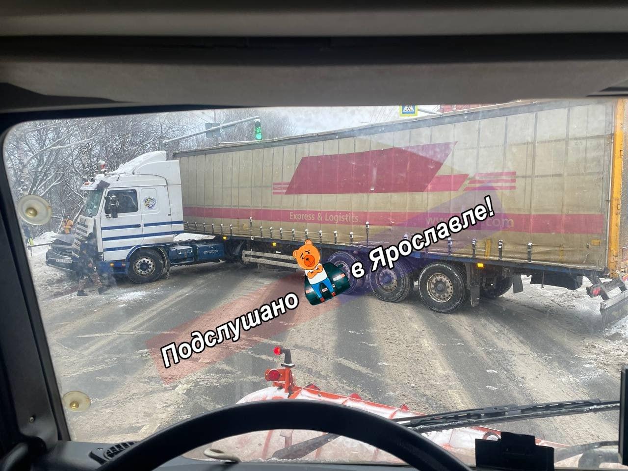 Фура перегородила дорогу в Ярославле, изменился маршрут автобуса