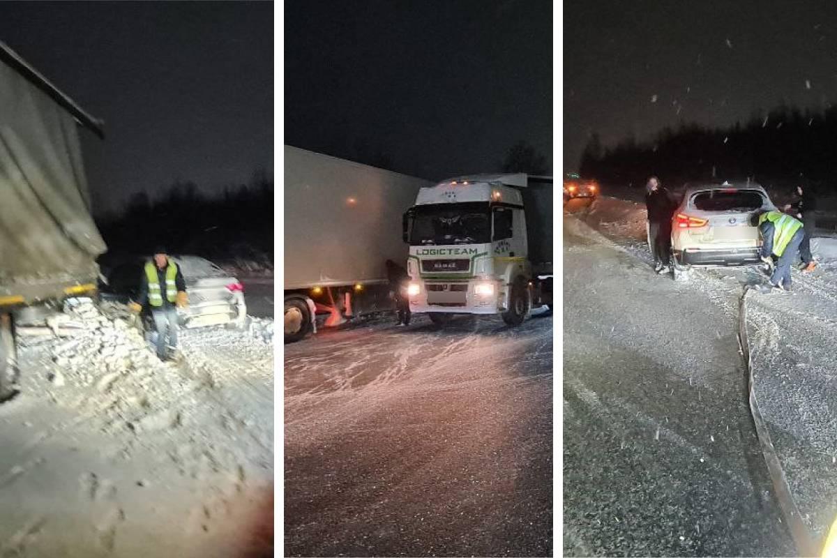«Перед переездом фура начала оттормаживаться и сложилась, зацепила задом „Газель“. Две легковые в кювет уехали, уворачиваясь от фуры», — рассказал один из очевидцев.