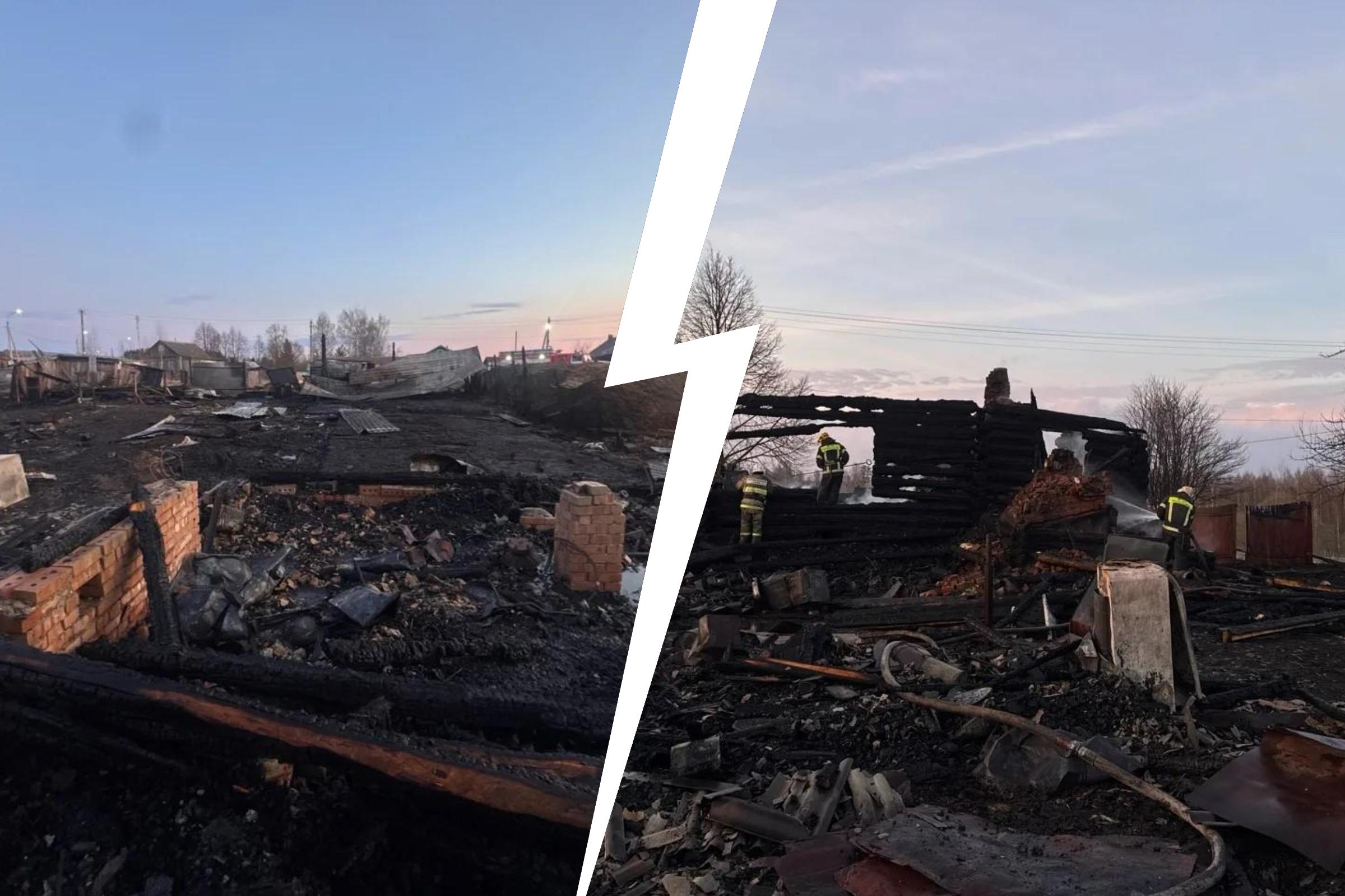 Крупный пожар привел к уничтожению двух домов и четырех хозяйственных построек