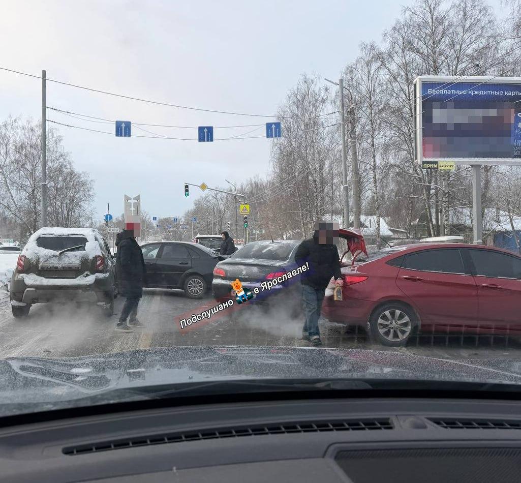 Утром 24 января на проспекте Авиаторов в Ярославле столкнулись четыре иномарки, что вызвало крупную пробку.