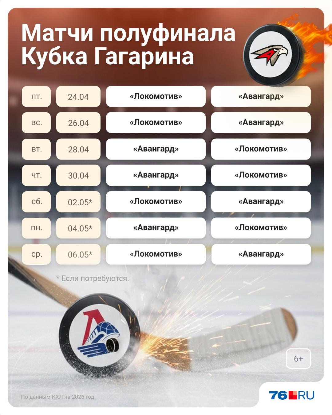 Полуфинальная серия Кубка Гагарина между «Локомотивом» и «Авангардом» стартует 24 апреля. Первые игры запланированы на домашней арене ярославской команды.