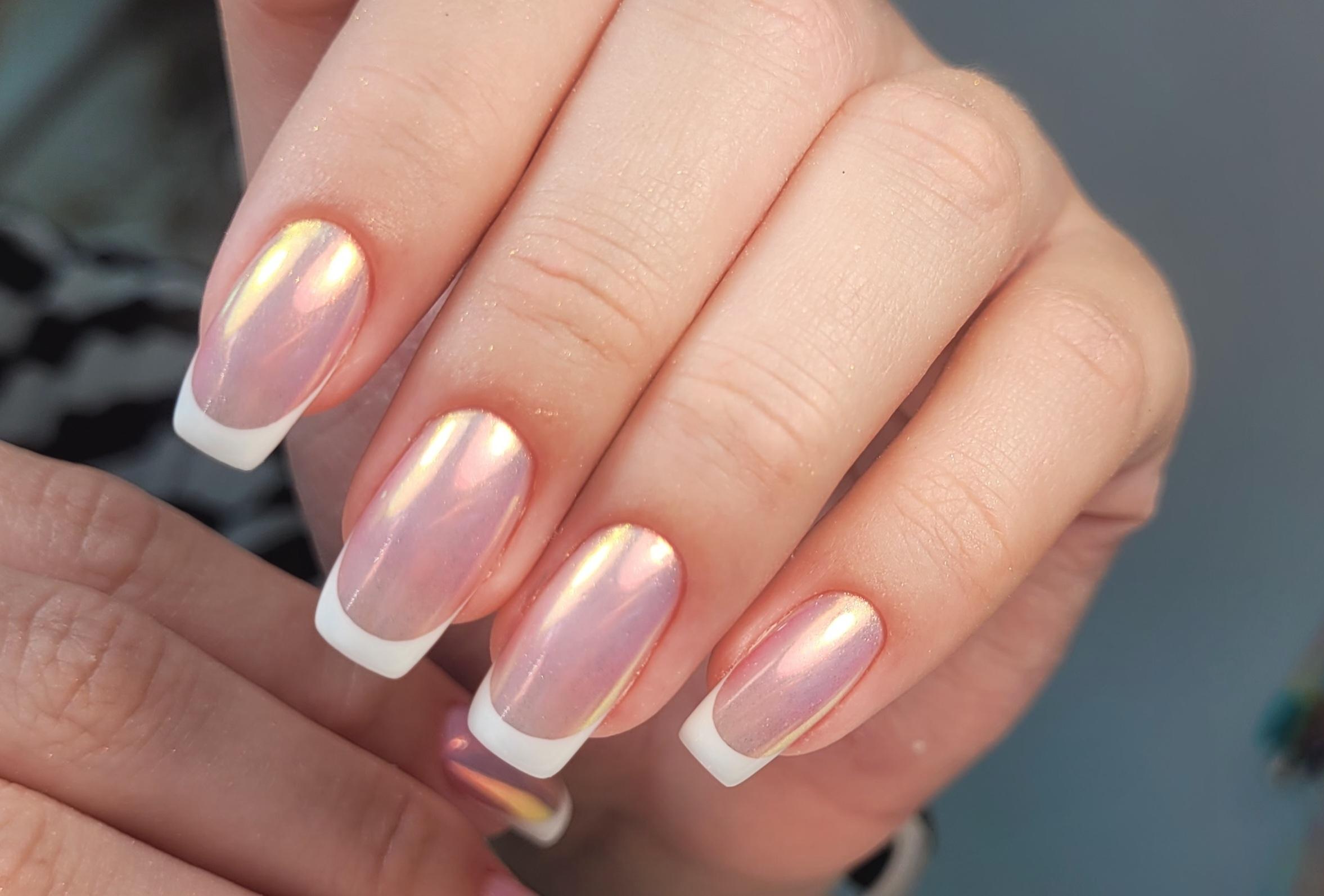 Для сдержанного, но нарядного варианта подойдёт френч с втиркой. Этот лаконичный дизайн сочетается с любым стилем одежды и не надоедает со временем.