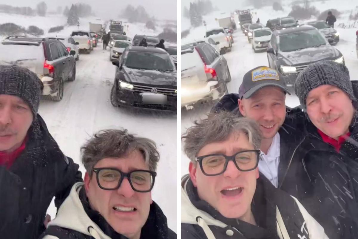 В видеообращении, опубликованном в телеграм-канале Антона Эльдарова, актёры заявили: «Ребятушки, мы стоим. Мы едем в Ярославль на спектакль, но вот уже сколько мы стоим здесь, это полпути. И сколько еще будем стоять, никто не знает. Очень надеемся, что мы успеем. Стоим мы часа полтора только. Не доезжая Переславля, не можем заехать в него. Поэтому, надеюсь, что вы нас дождетесь, ярославцы, родные. Мы едем и спешим. Стараемся, спешим, обнимаем».