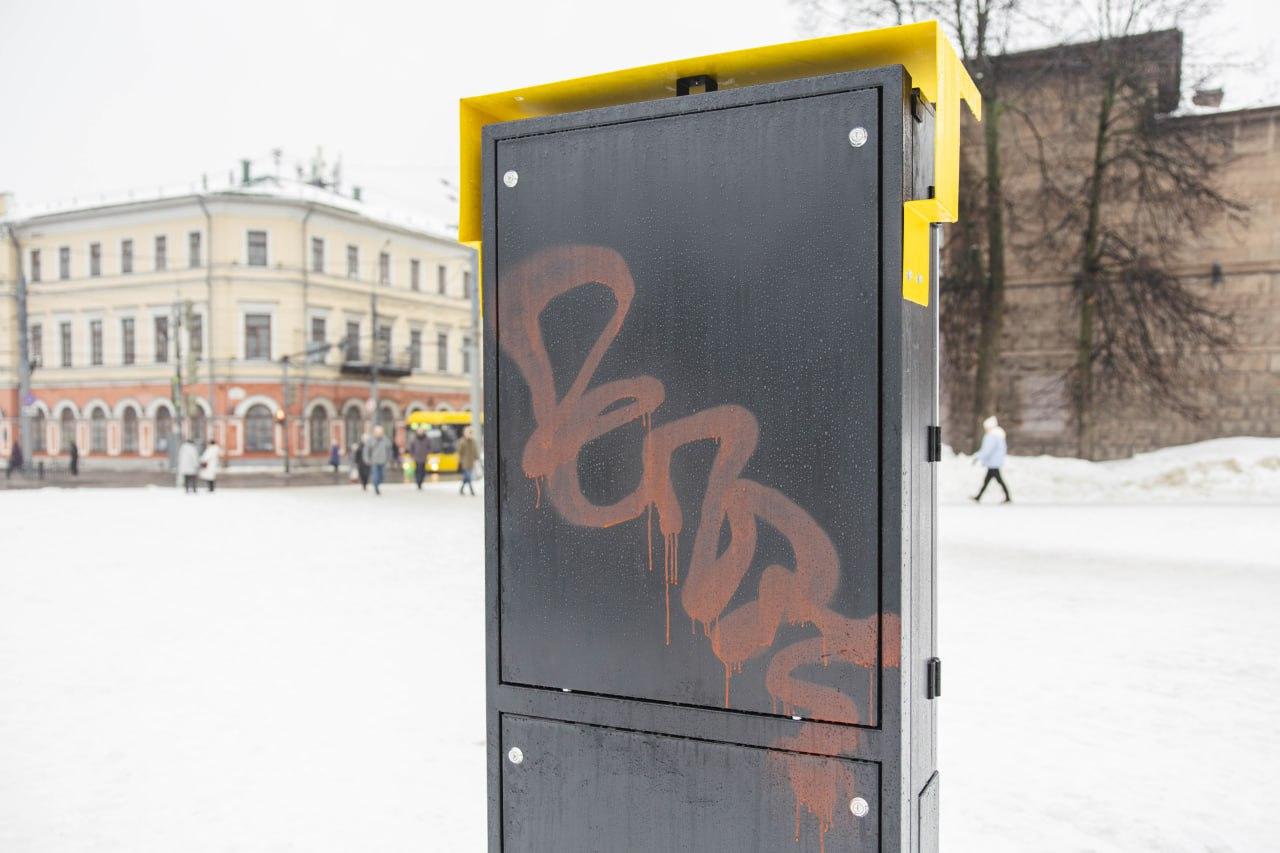 В начале марта на Богоявленской площади Ярославля жители города обратили внимание на металлическую конструкцию с экраном, смонтированную на остановке общественного транспорта.