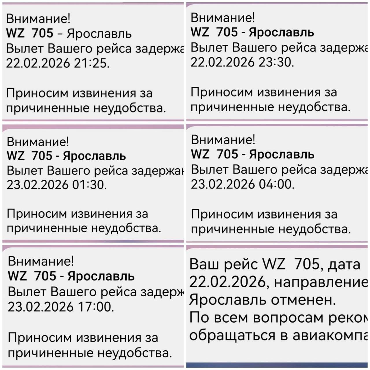 Авиарейс из Санкт-Петербурга в Ярославль, запланированный на 22 февраля, был отменён после нескольких изменений расписания. Один из пассажиров подробно описал ситуацию в телеграм-канале «Жесть Ярославль».