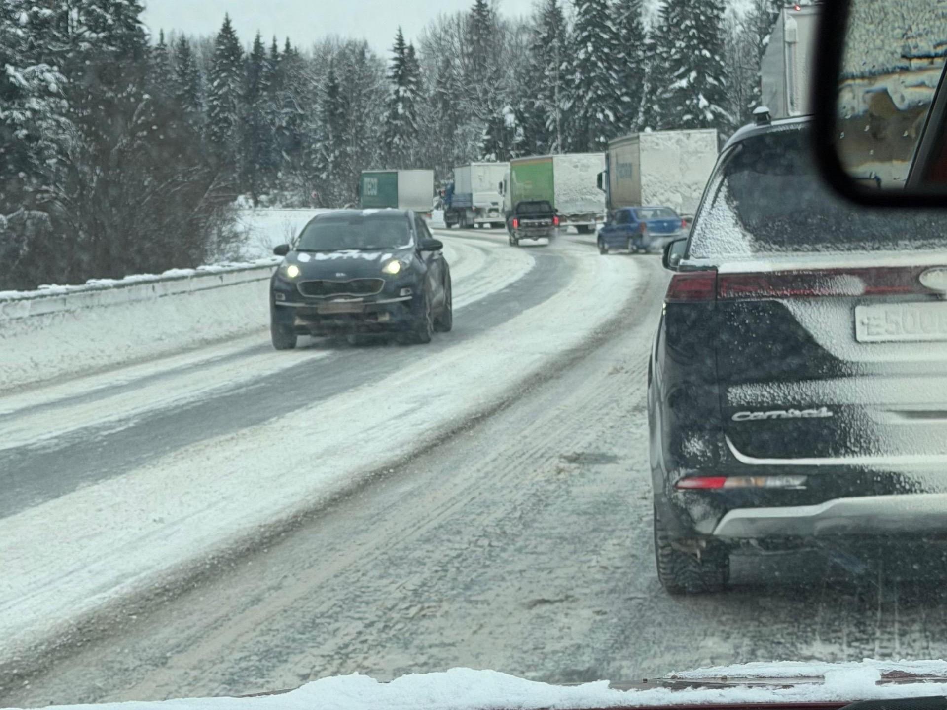 Днем 27 января на подъезде к Переславлю-Залесскому со стороны Москвы, в районе деревни Василево, сформировался затор из грузовых и легковых автомобилей.