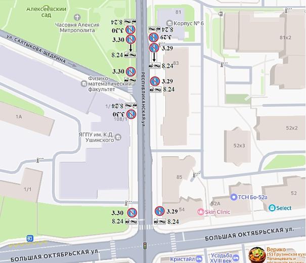 Схематическая карта участка улицы Республиканской с измененными правилами стоянки