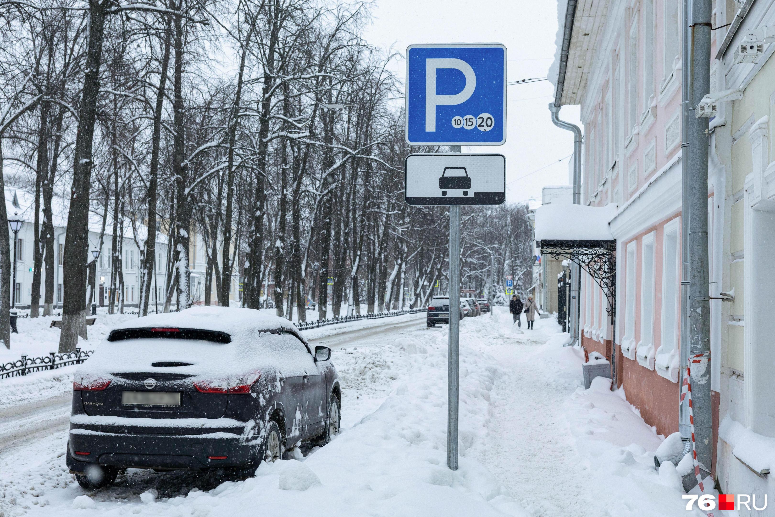 Платные парковочные зоны в Ярославле нередко остаются нерасчищенными после снегопадов.