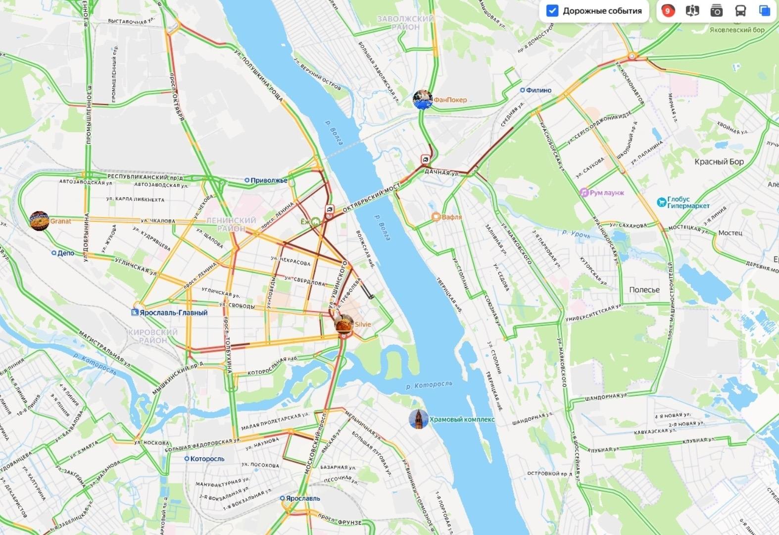 Вечером в среду, 19 марта, в Ярославле сложилась сложная дорожная обстановка с интенсивностью пробок, достигшей девяти баллов. По информации сервиса «Яндекс.Карты», причиной стали несколько ДТП, три из которых произошли в районе Октябрьского моста, а ещё одно — на проспекте Октября.