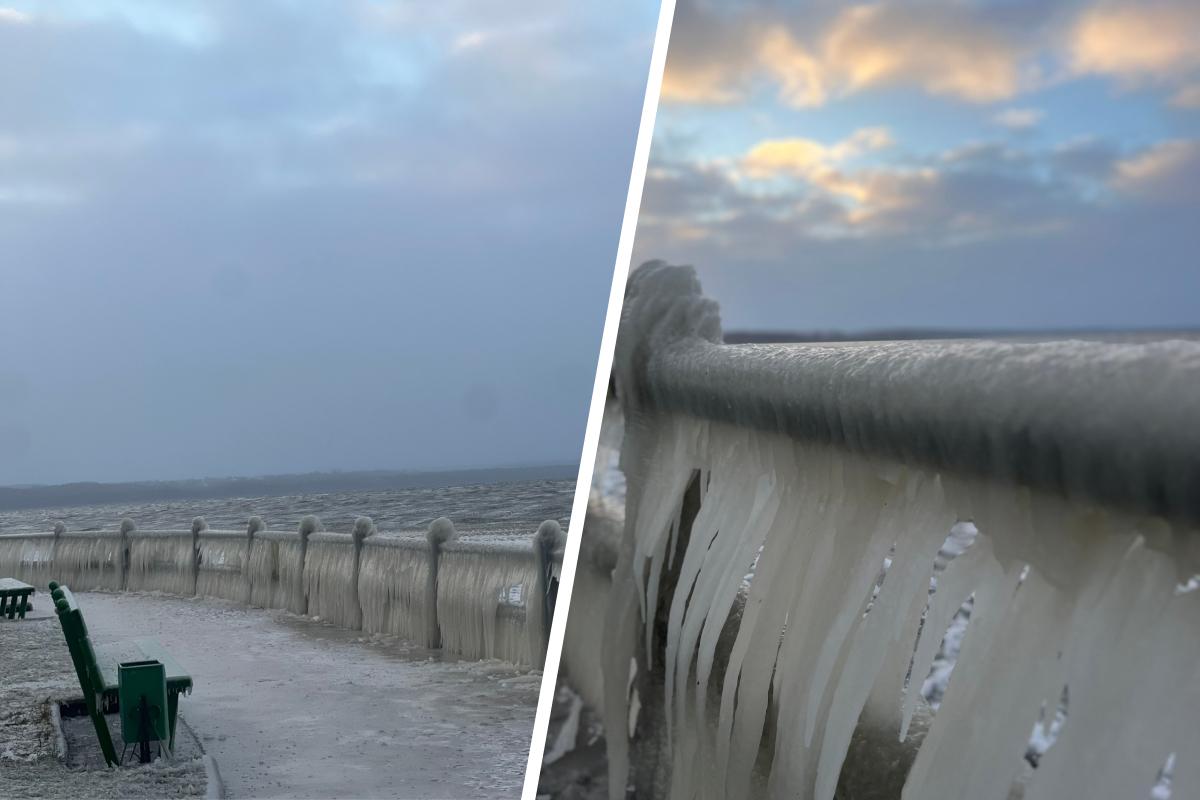Ночью в Переславле городская набережная покрылась ледяной коркой. Льдом сковало ограждения вдоль воды, а также выпал снег. Завораживающие кадры последствий стихии местные жители разместили в социальных сетях.