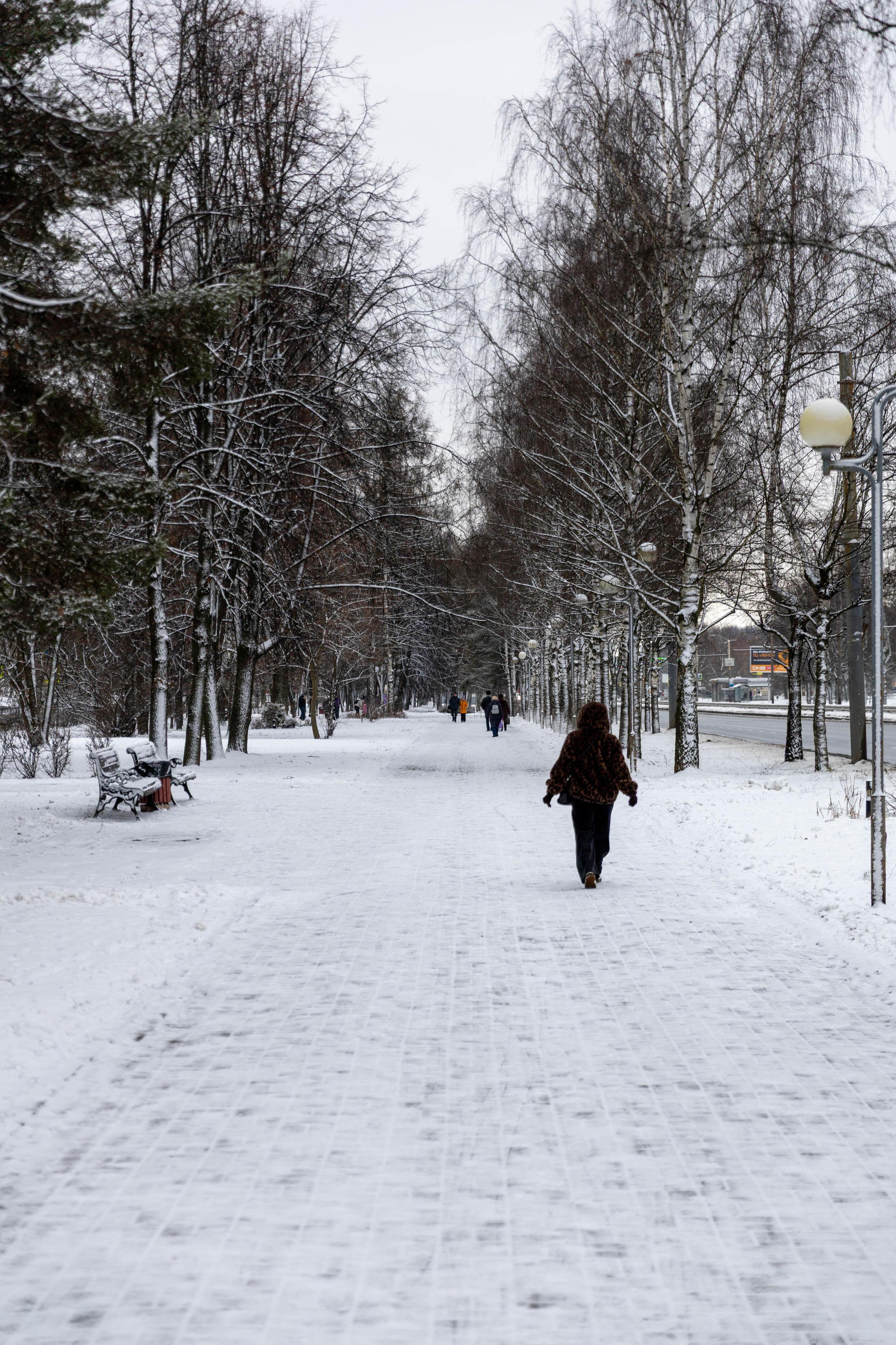 Прогулка по заснеженным улицам доставляет удовольствие.